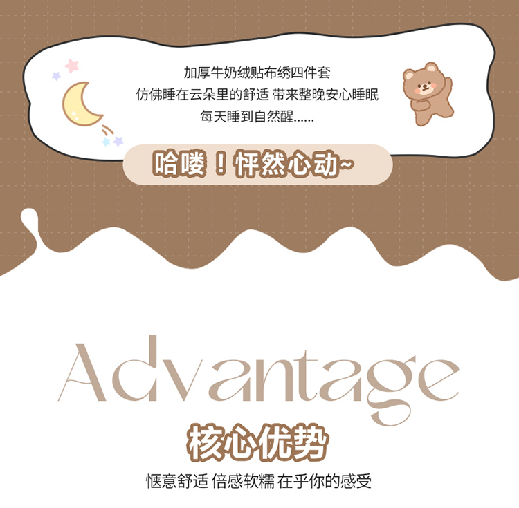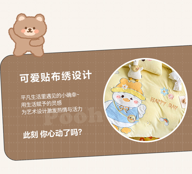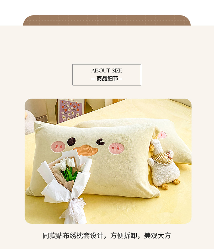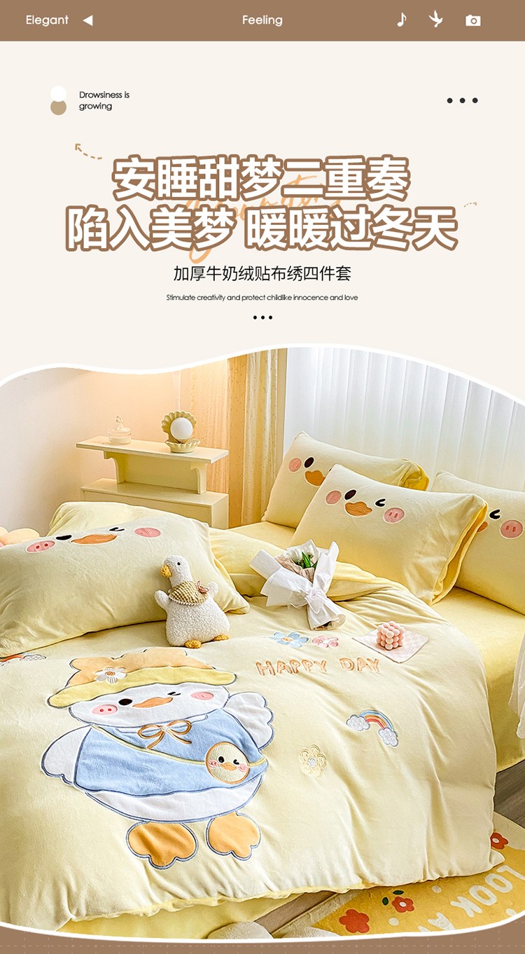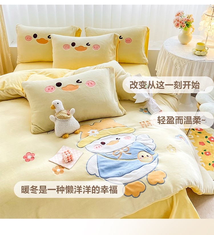 商品名称:涵宸2022新款加厚牛奶绒贴布绣系列四件套 牛奶绒-黄呀