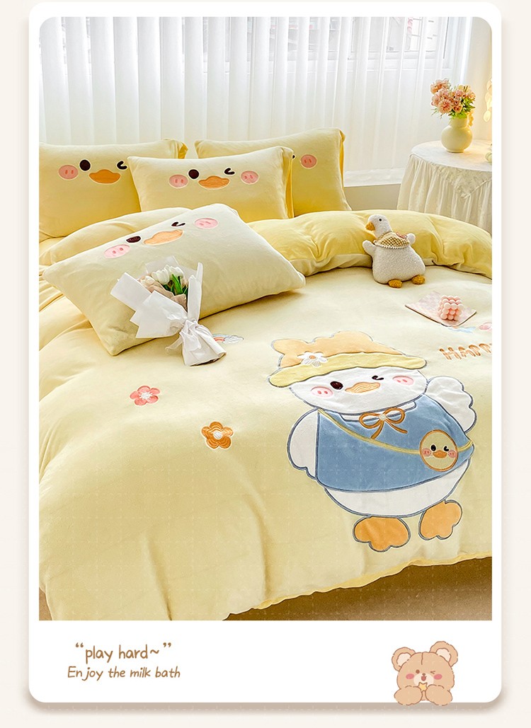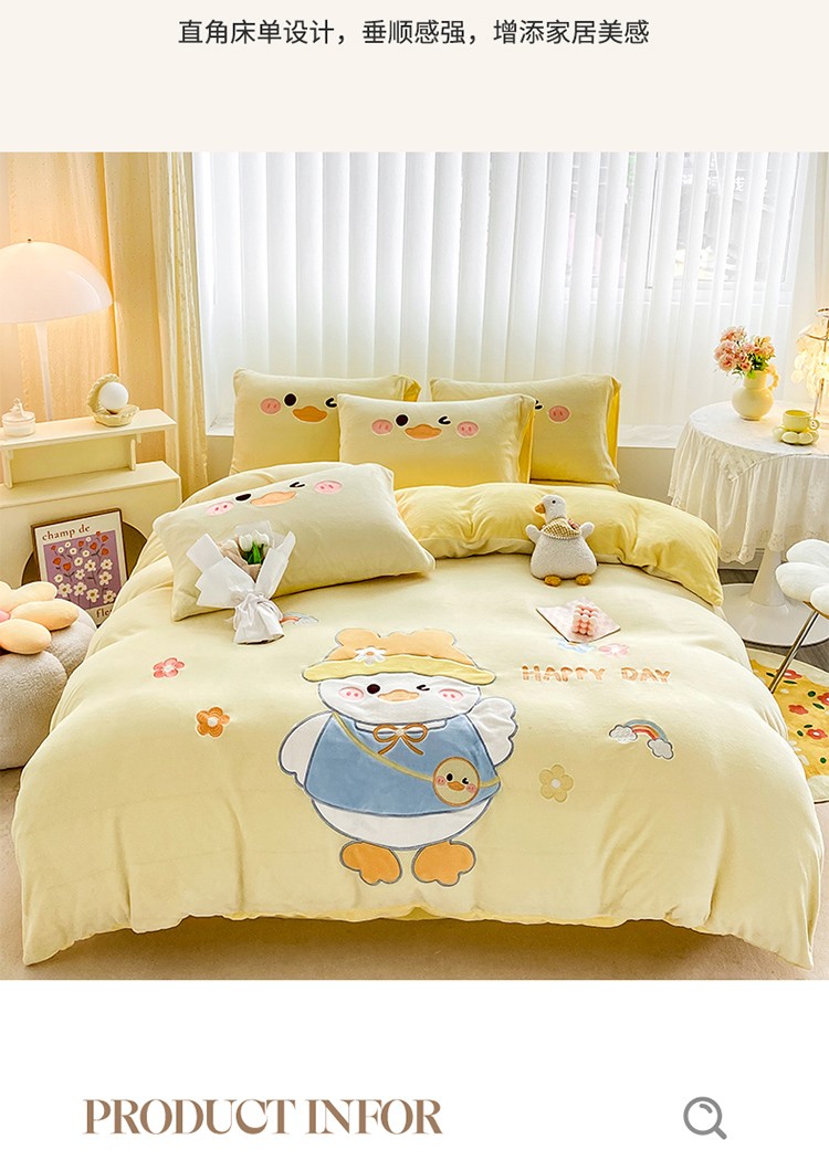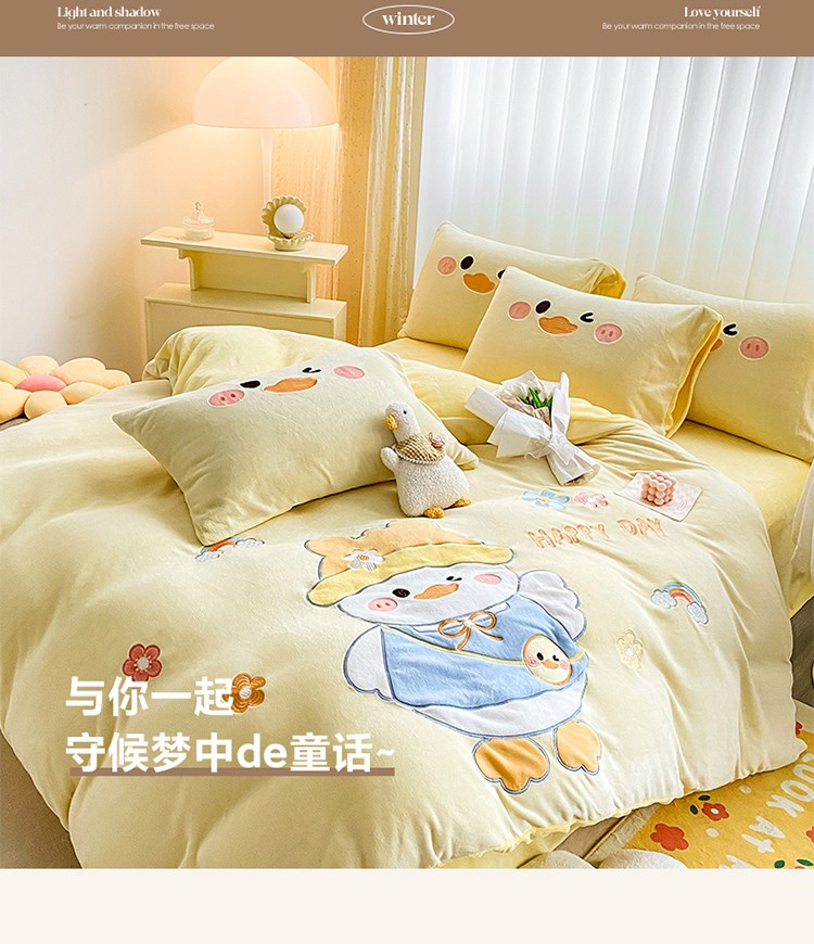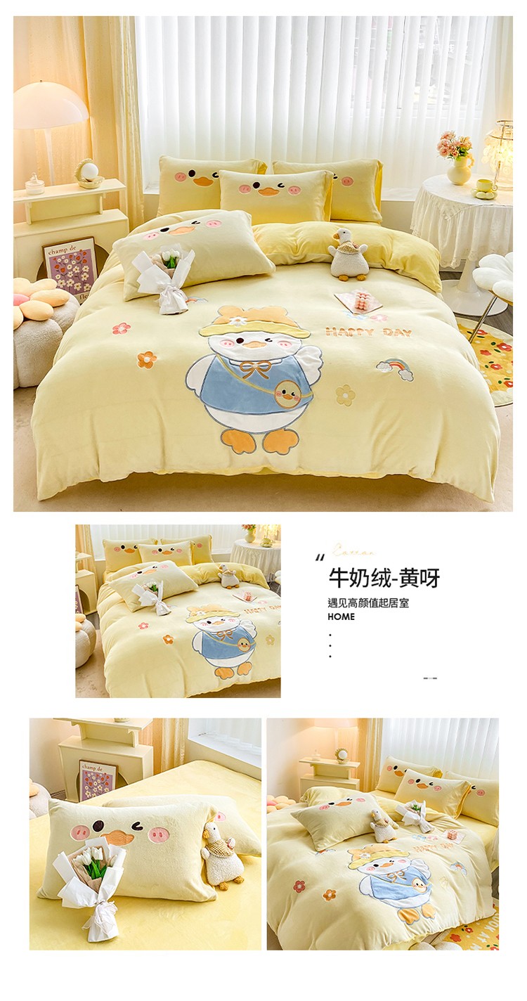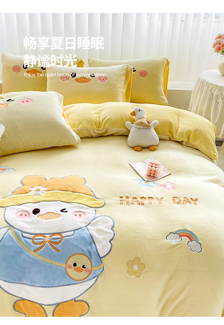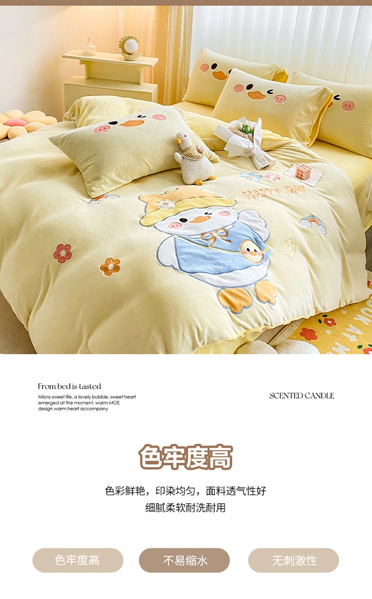 涵宸2022新款加厚牛奶绒贴布绣系列四件套 牛奶绒-黄呀