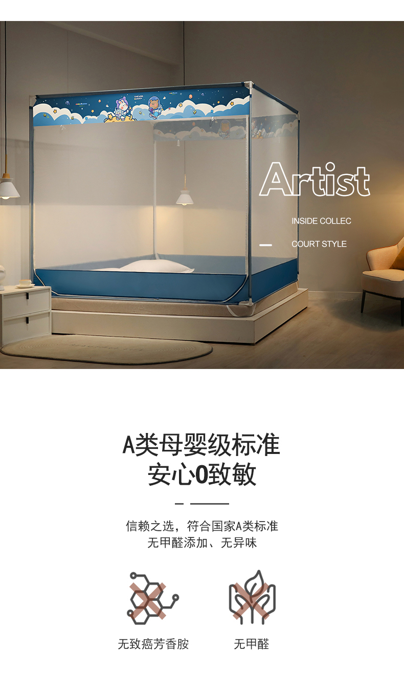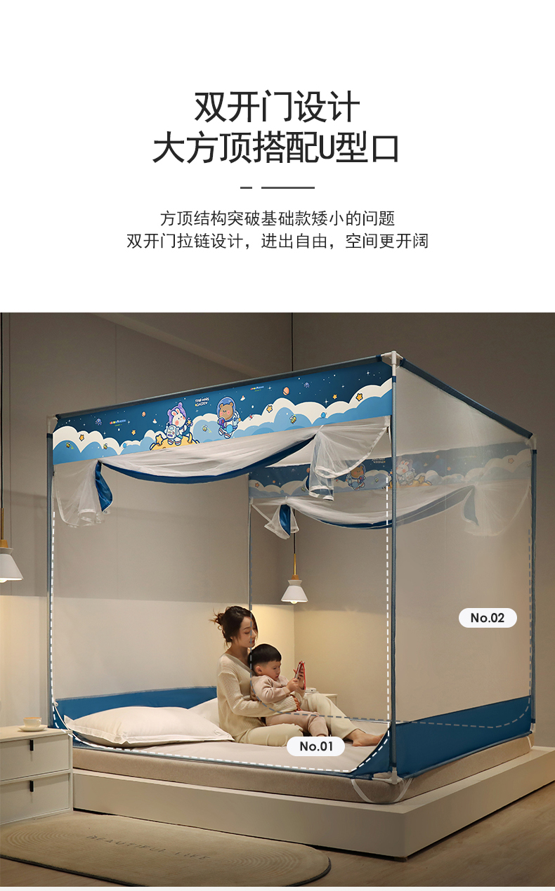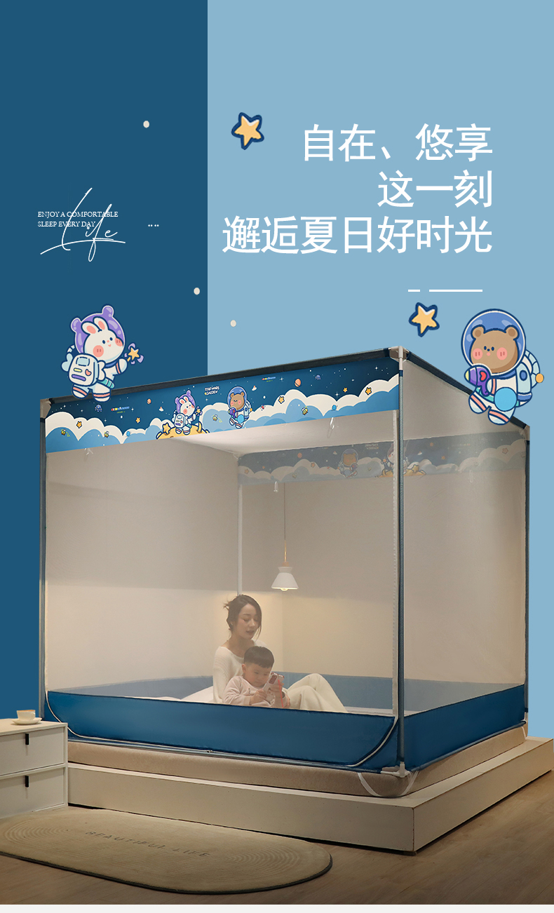 当前位置: 91家纺网 > 商品网购 > 床上用品 > 蚊帐 > 坐床式蚊帐 > 佳梦家纺 2023新款方顶印花坐床蚊帐 漫游星空