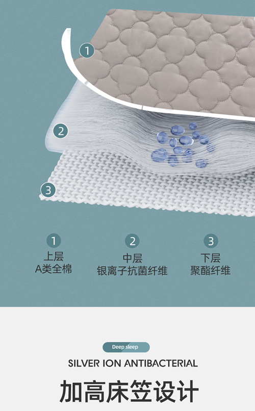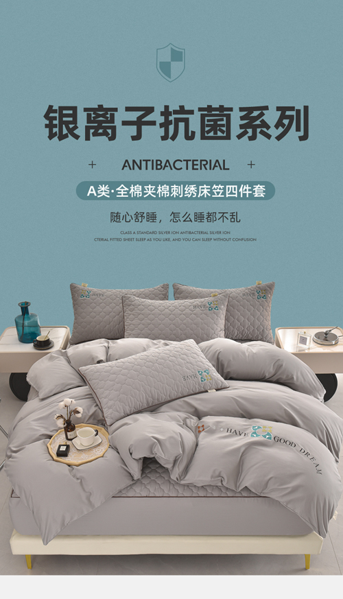(总)好眠好梦家纺 2025新款全棉50S夹棉抗菌防螨床笠-棉生活系列,白色,粉色,卡其,深灰,天蓝,烟灰