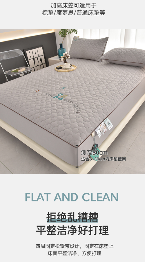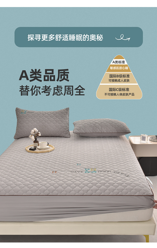 (总)好眠好梦家纺 2025新款全棉50S抗菌防螨夹棉防水床笠-无限之光系列,白色,粉色,卡其,深灰,天蓝,烟灰