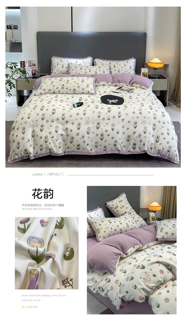 (总)仟网汇 2025新款亲肤舒适双面牛奶绒床盖款四件套,爱心灰,爱心紫,复古小花,黑珍珠,可可奶咖,蔷薇粉,丝绒蛋糕,胭脂,樱桃格趣,枝枝兔,妖姬,紫波点,豆蔻年华,朵缦,赫本,黑糖珍珠,樱桃派,豹纹kt咖