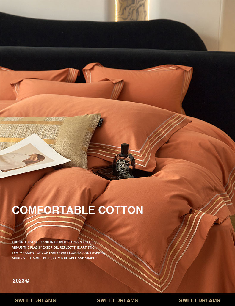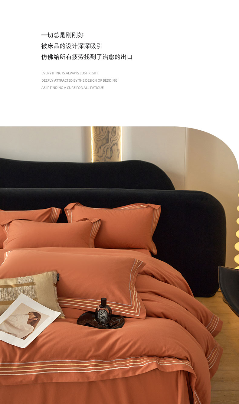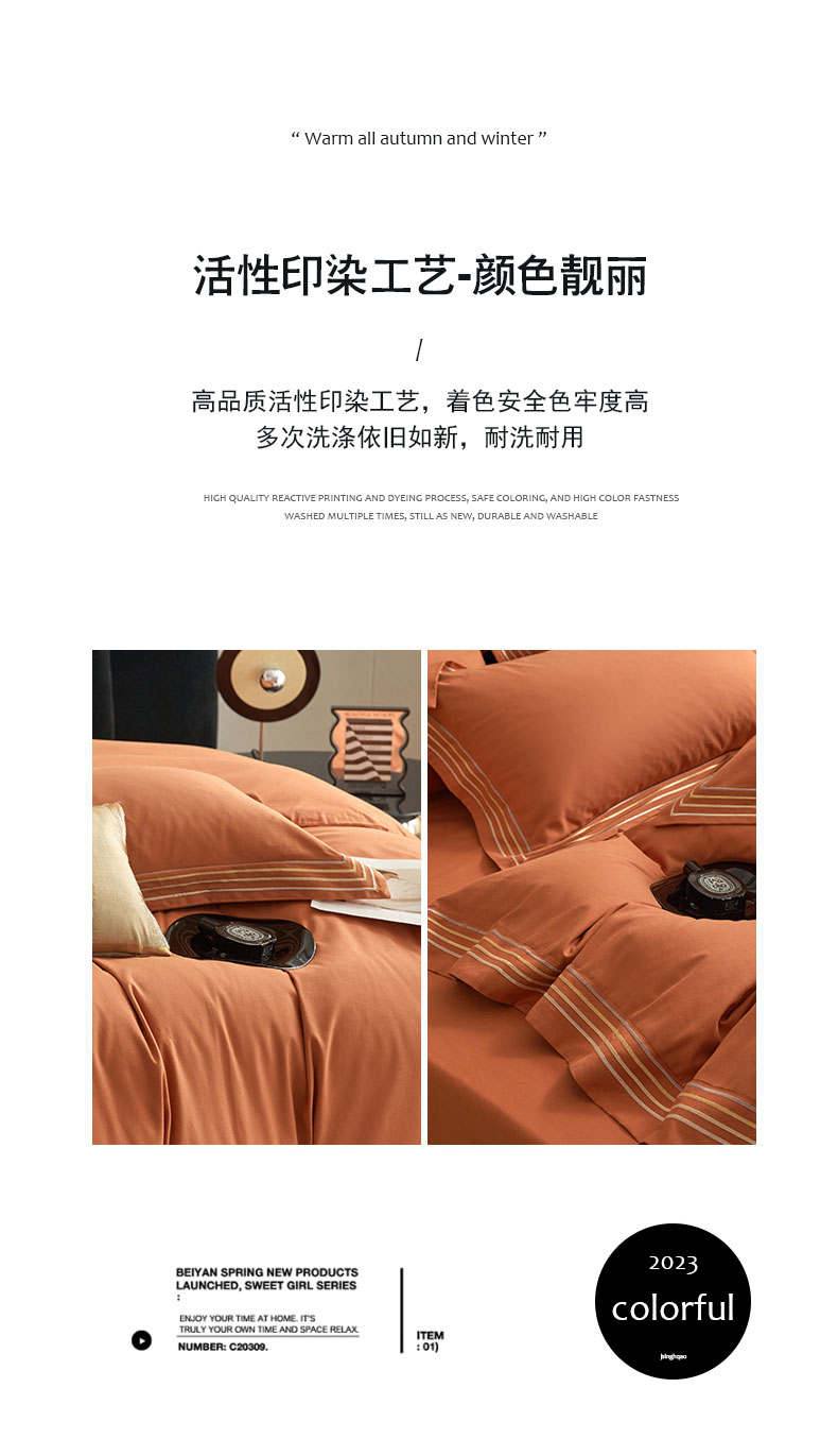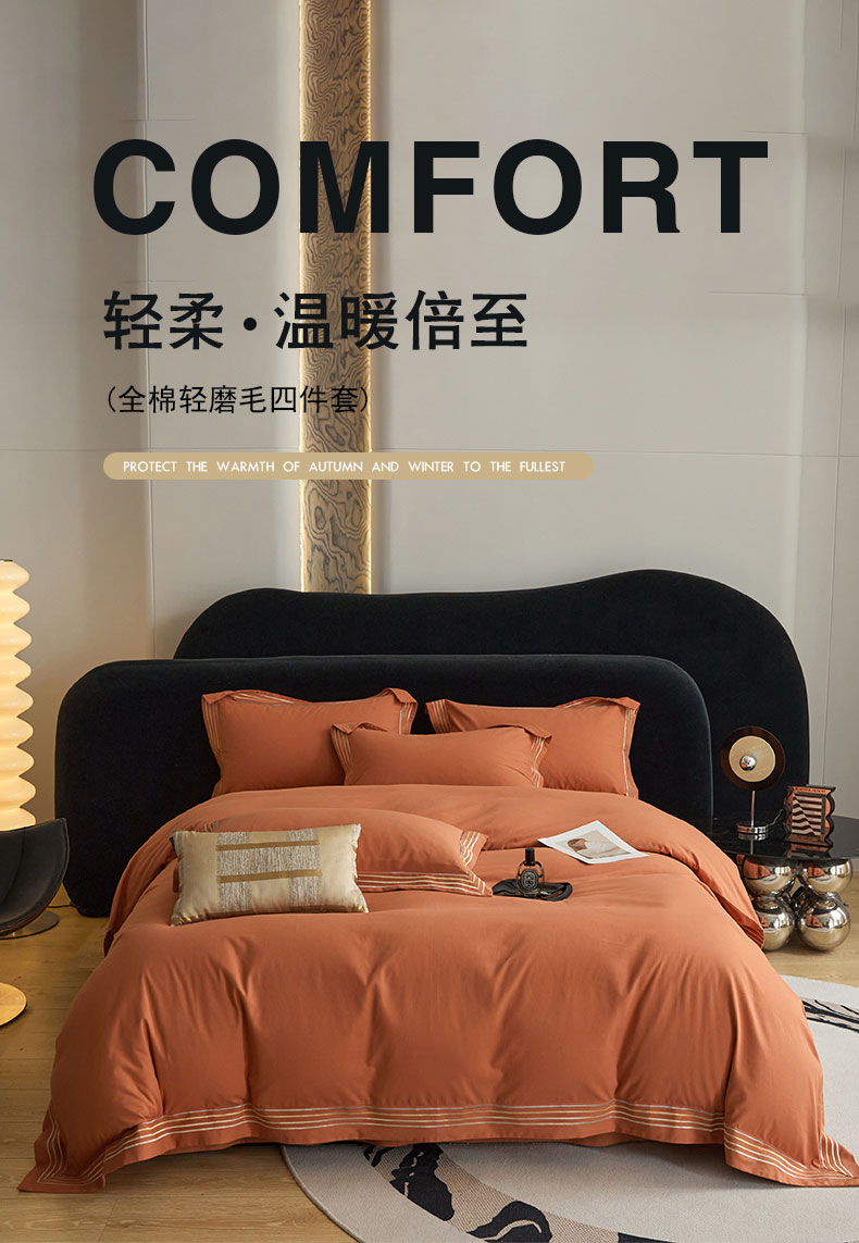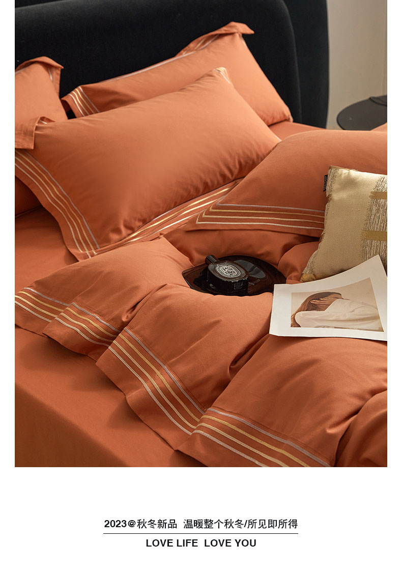 安妮家居 2023新款全棉轻磨毛刺绣四件套-奥斯汀 爱玛橙