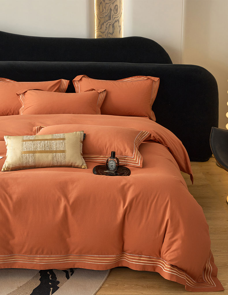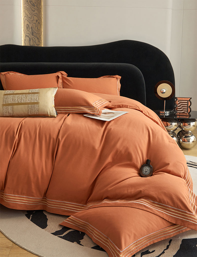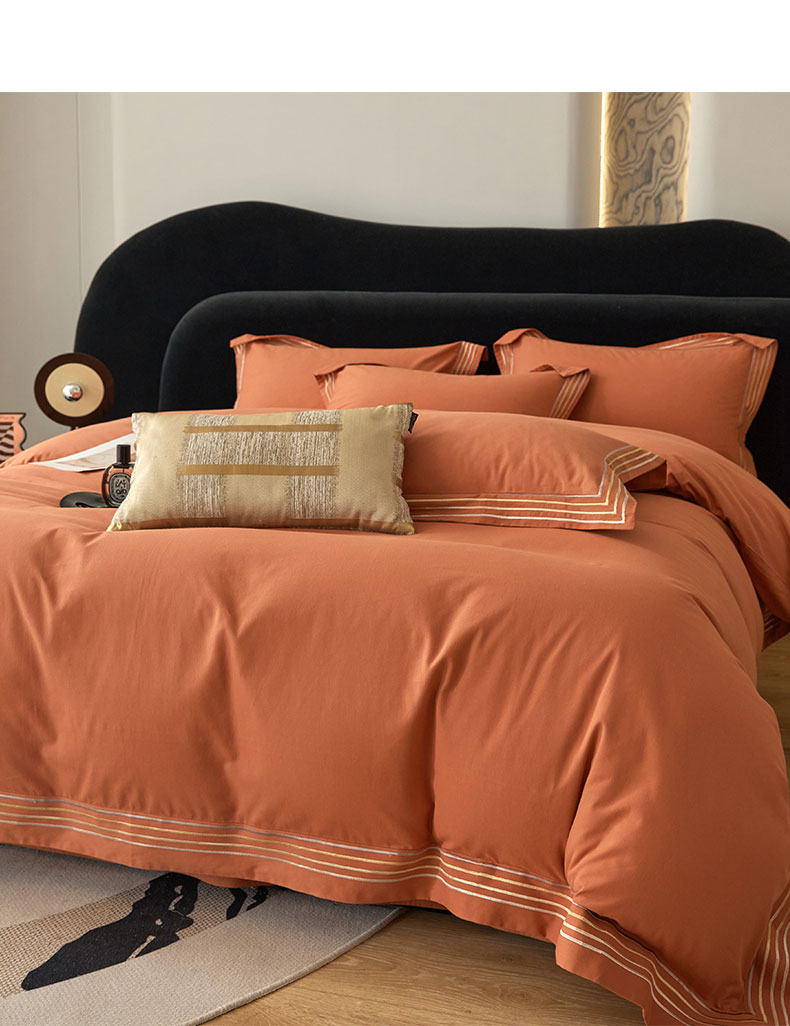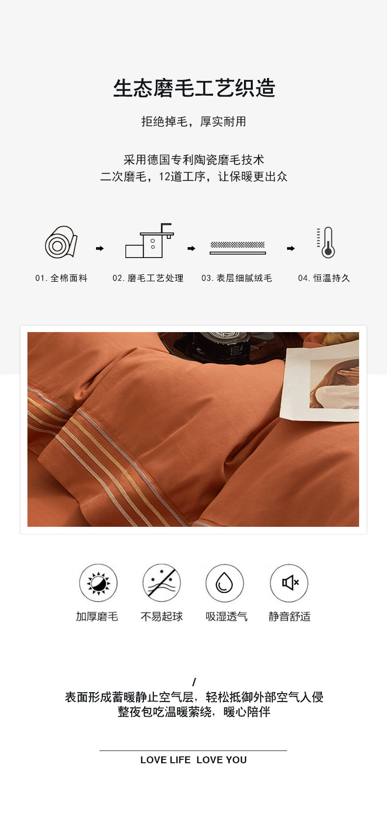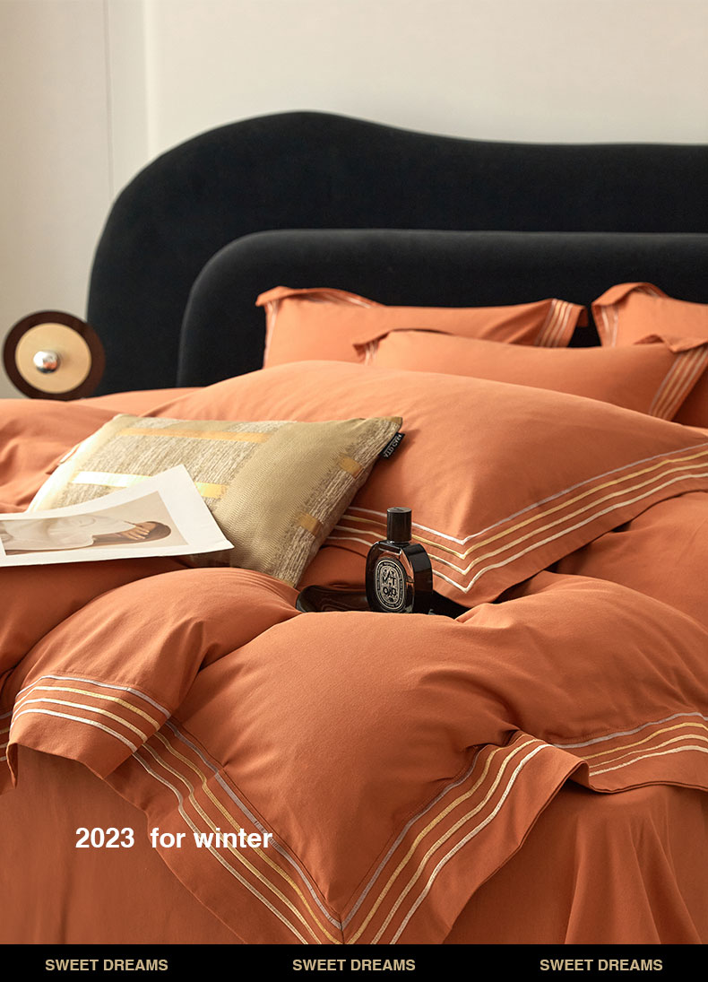 安妮家居 2023新款全棉轻磨毛刺绣四件套-奥斯汀 爱玛橙