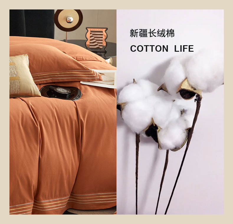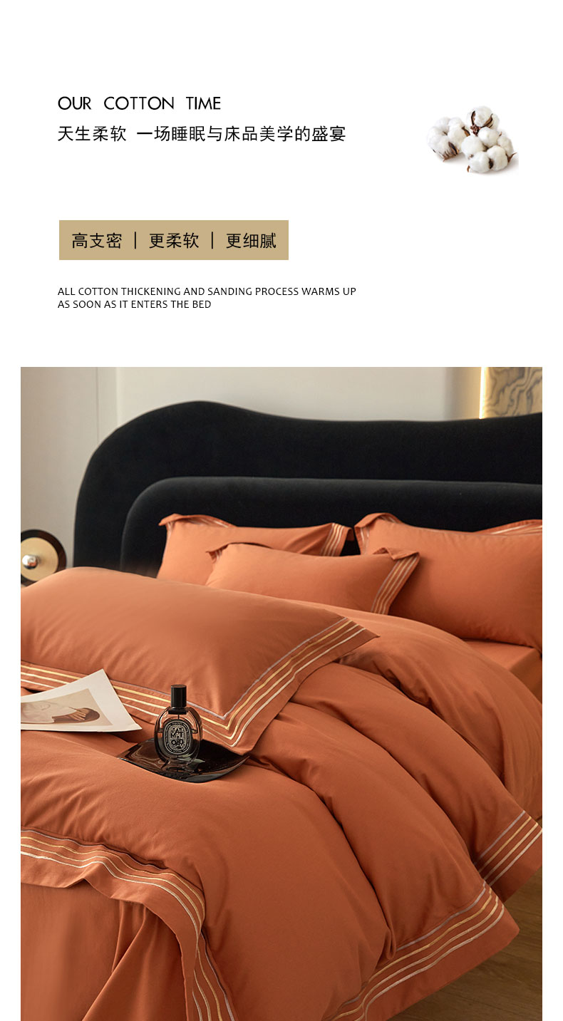 商品名称:安妮家居 2023新款全棉轻磨毛刺绣四件套-奥斯汀 爱玛橙