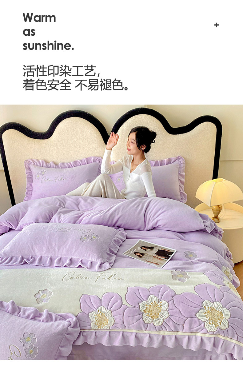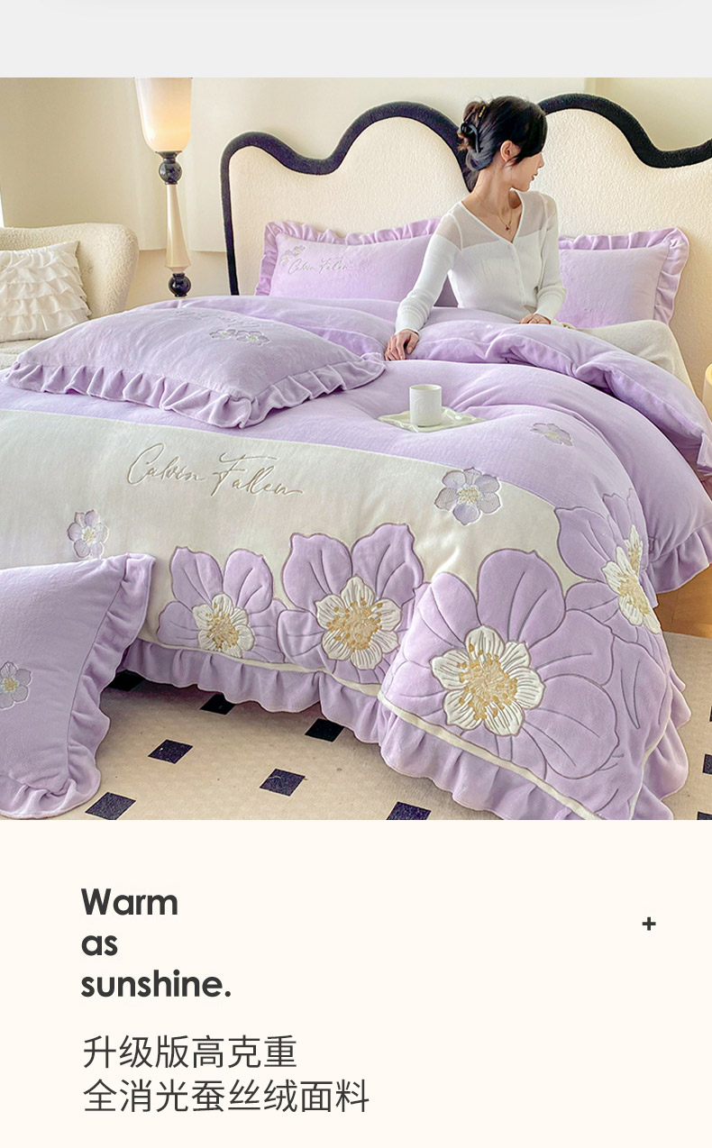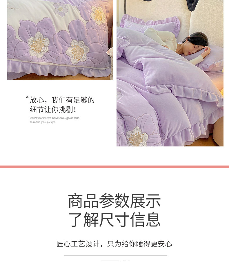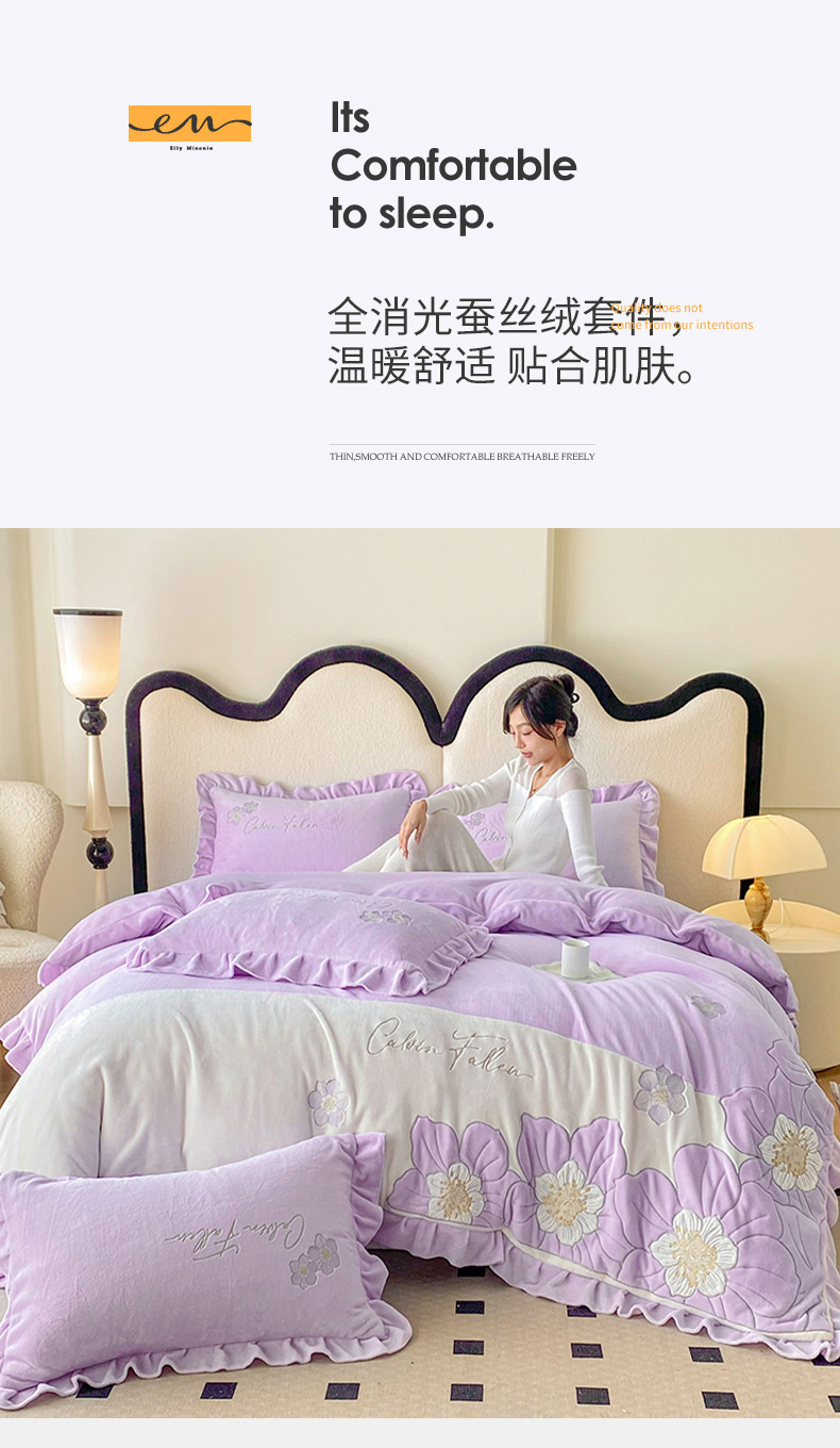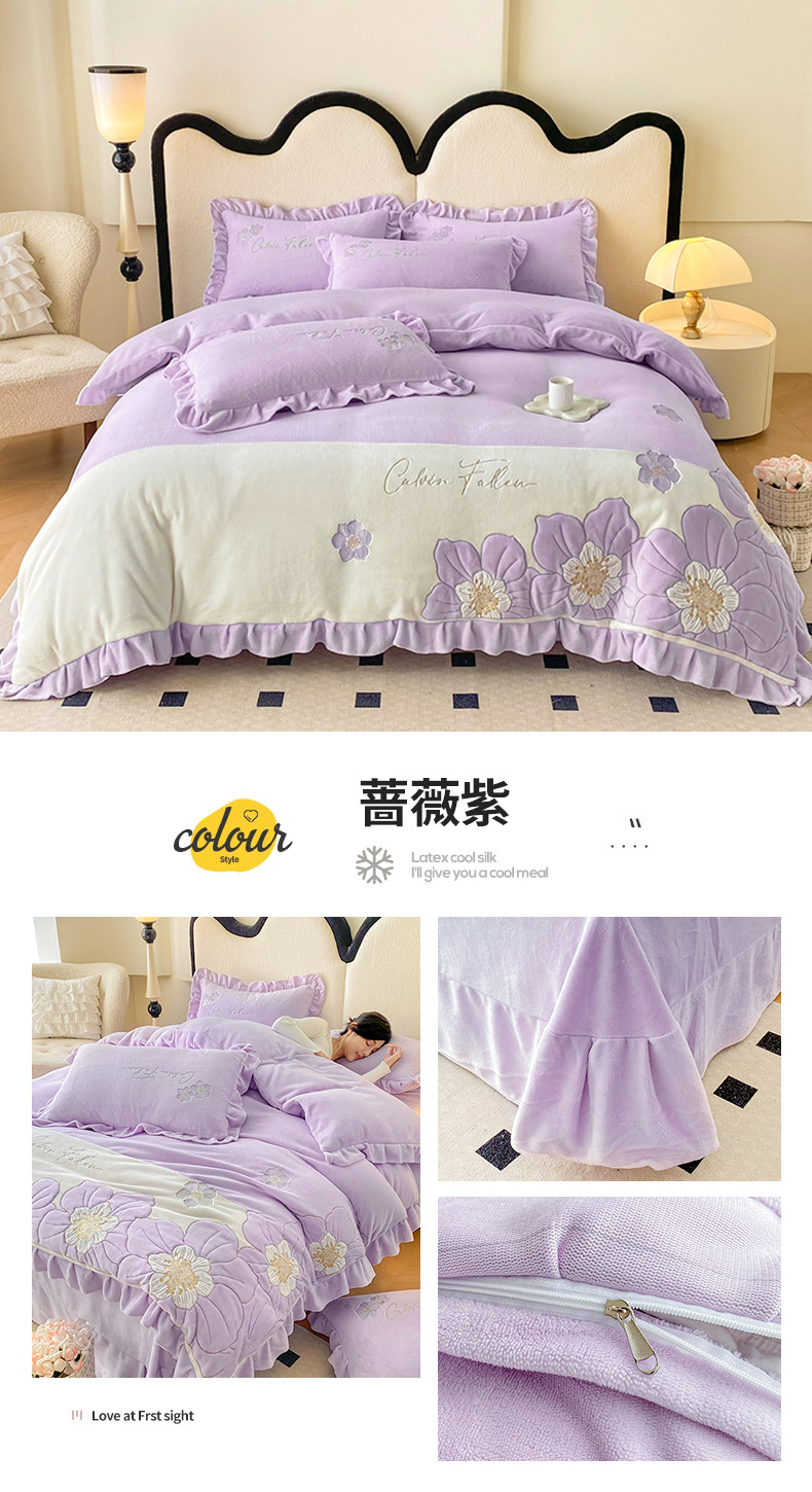 (总)可以家居 2025新款高克重全消光超细旦奶芙云绒四件套-玛利亚系列-莱卡芙,贵族粉,清雅蓝,伯爵绿,优雅紫,粉豆沙