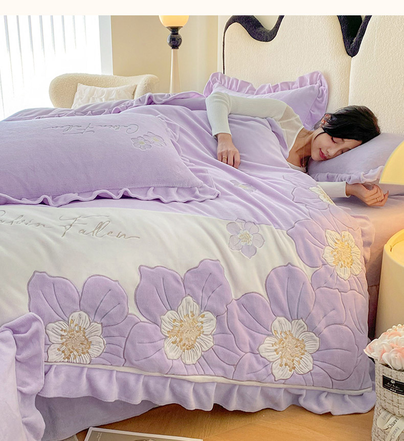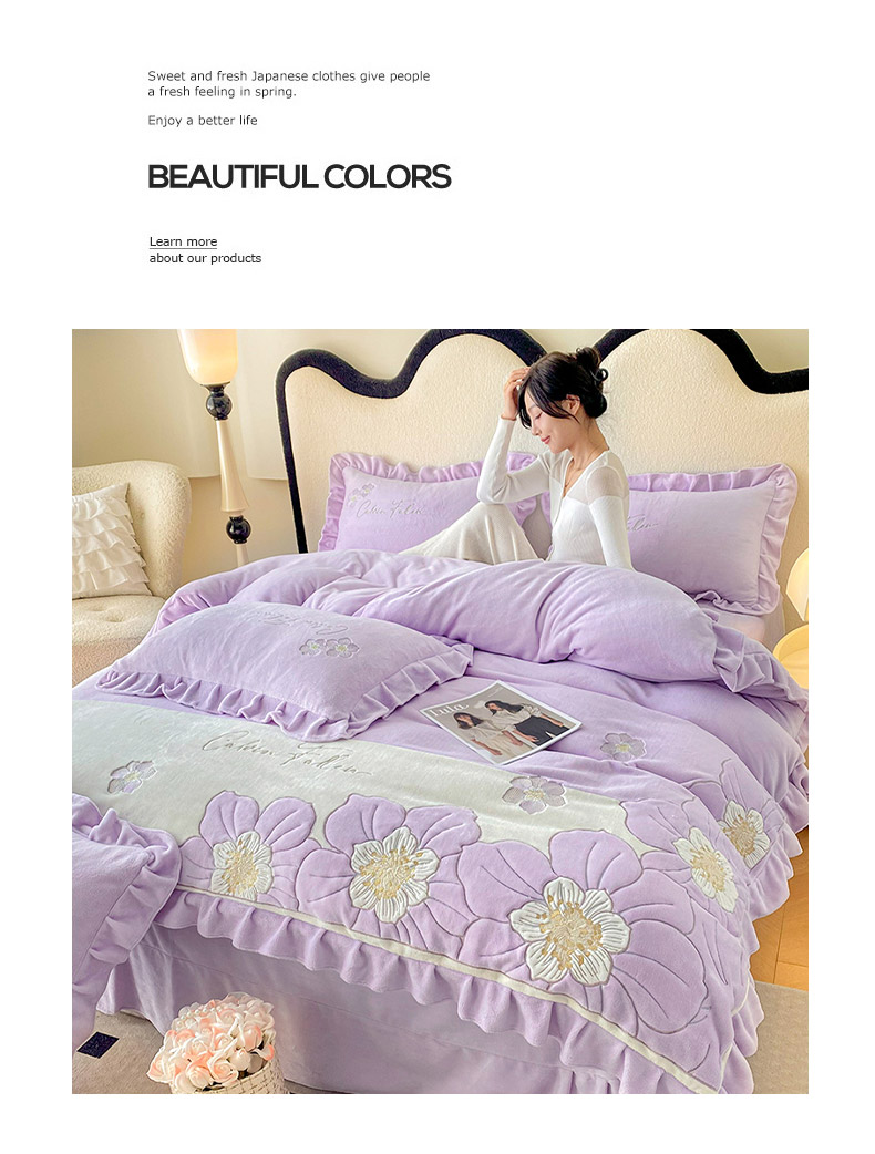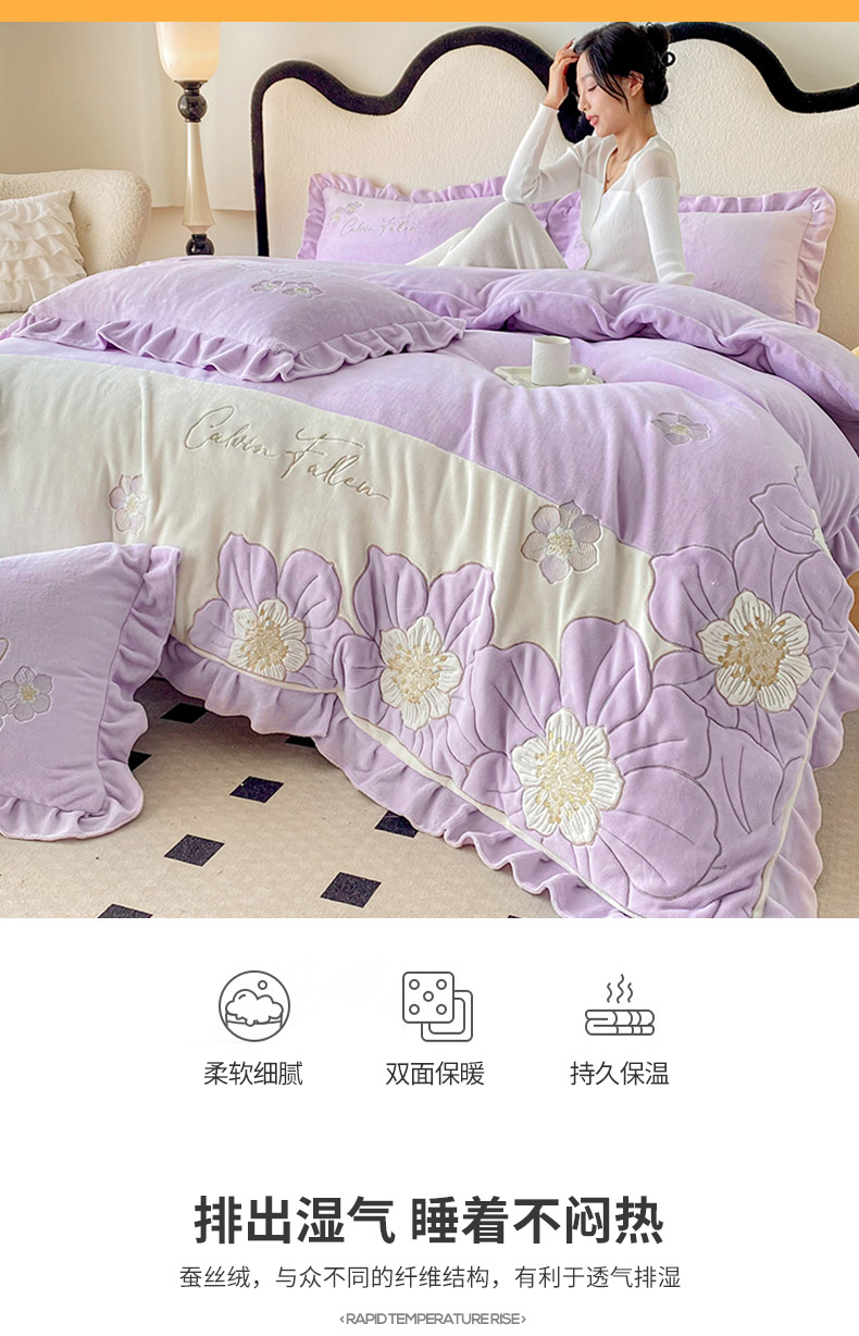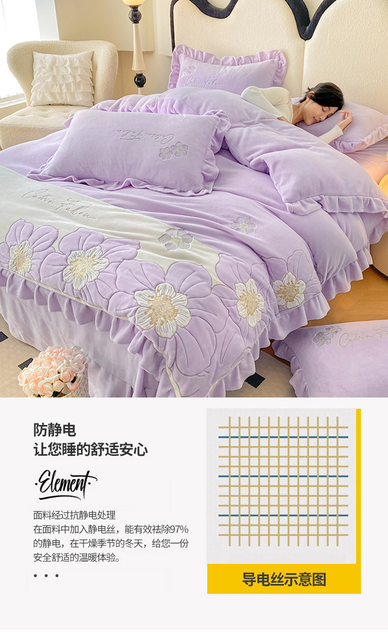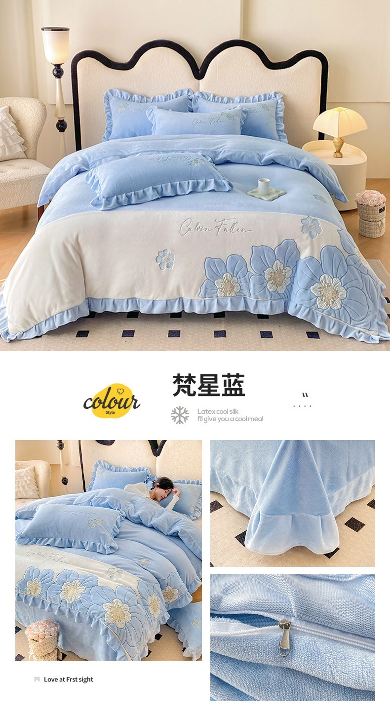 (总)可以家居 2025新款高克重全消光超细旦奶芙云绒四件套-玛利亚系列-莱卡芙,贵族粉,清雅蓝,伯爵绿,优雅紫,粉豆沙