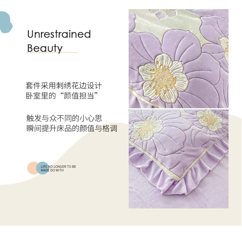 (总)可以家居 2025新款高克重全消光超细旦奶芙云绒四件套-玛利亚系列-莫妮卡,莫妮卡粉豆沙,莫妮卡清雅蓝,莫妮卡新芽绿,莫妮卡优雅紫,莫妮卡贵族粉