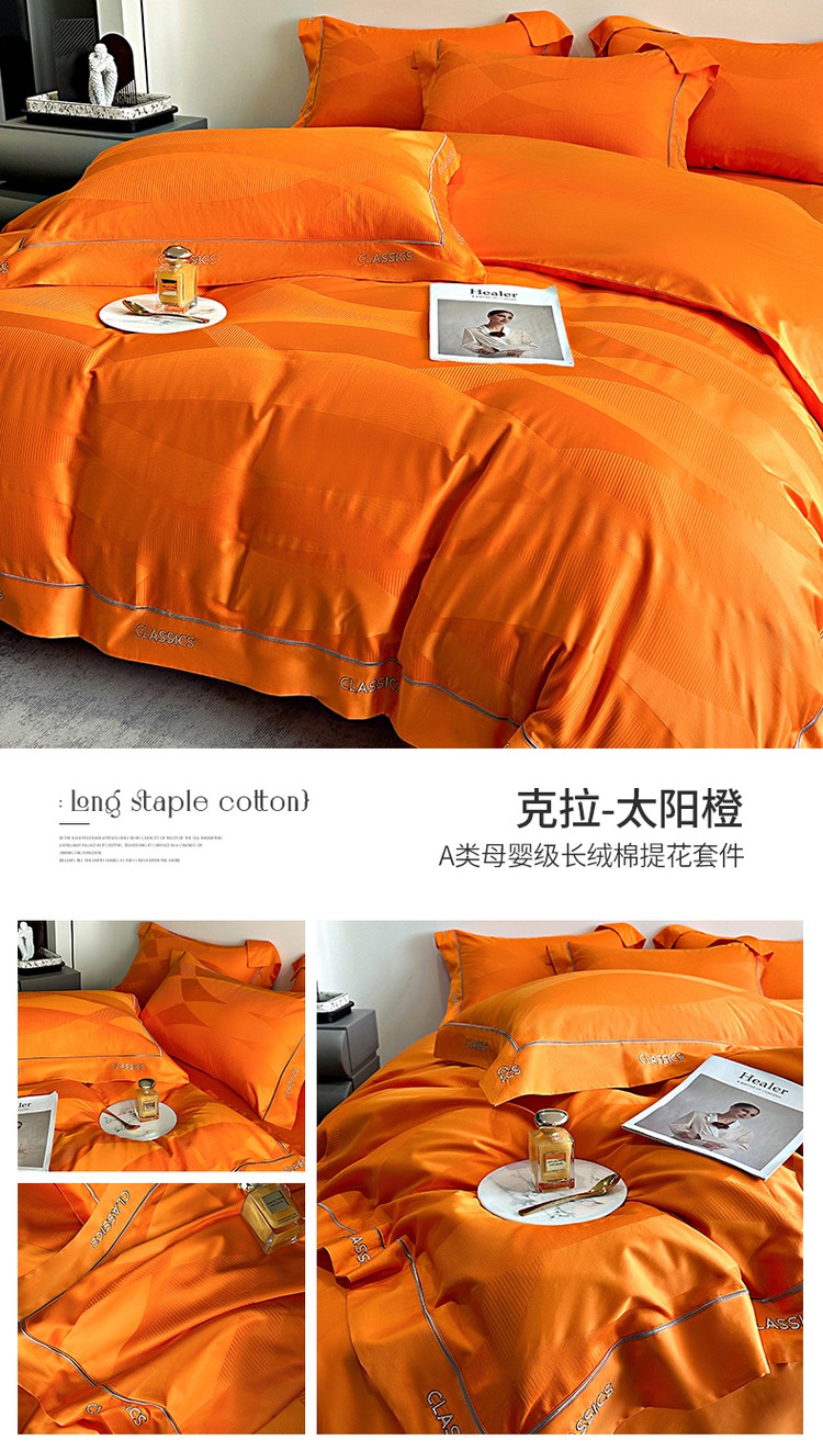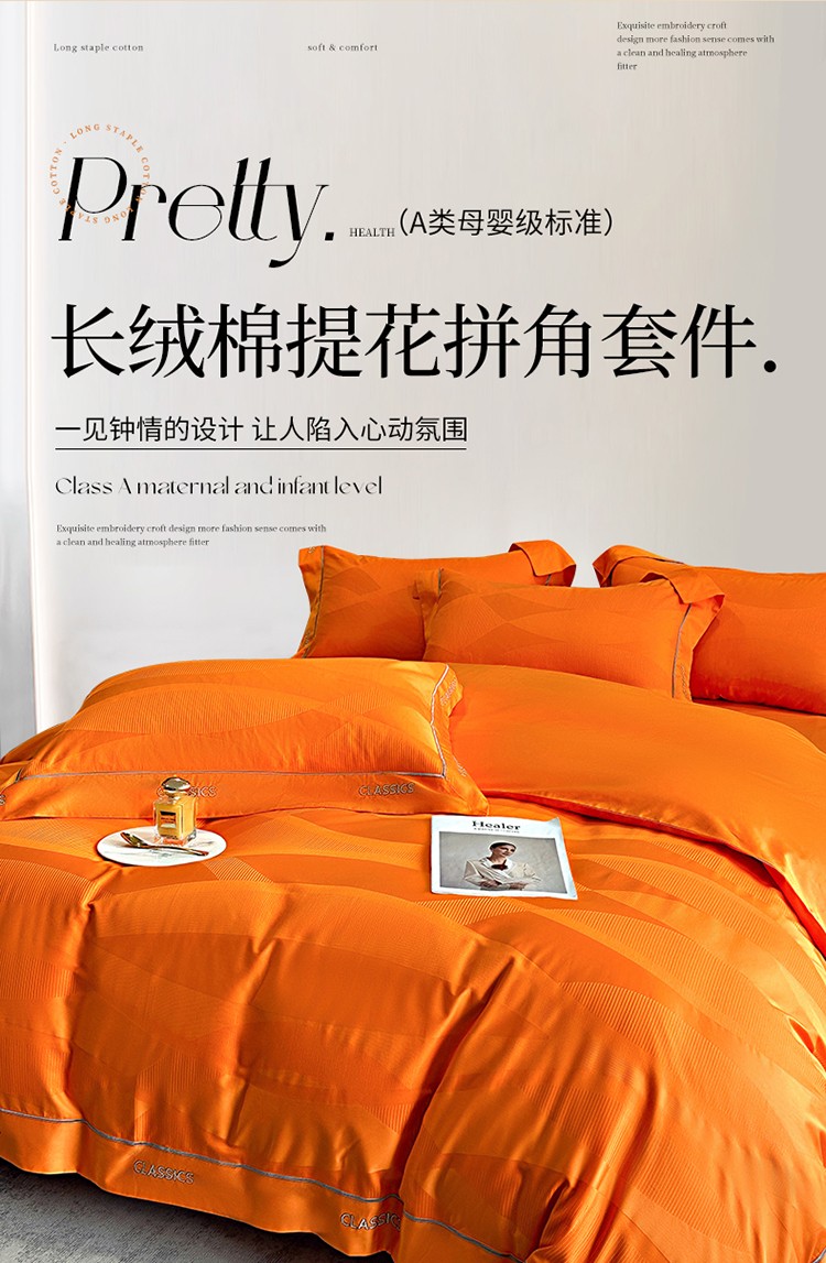 新款100支长绒棉提花拼角刺绣套件