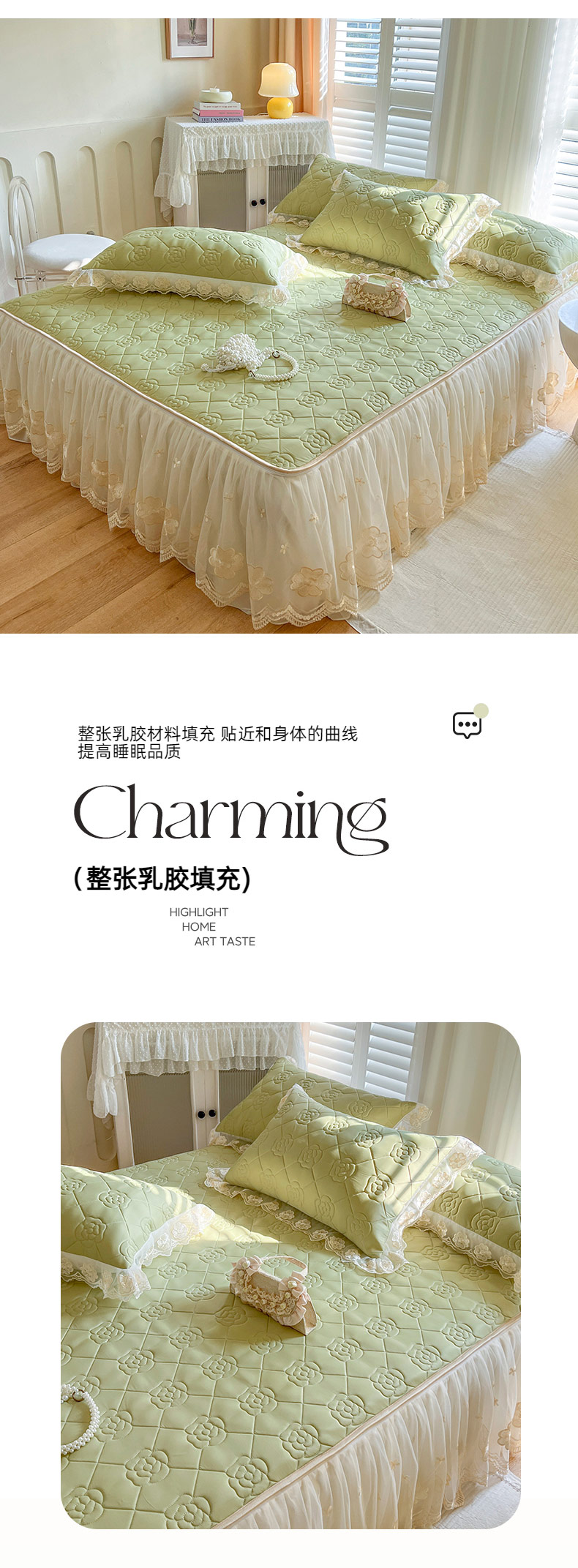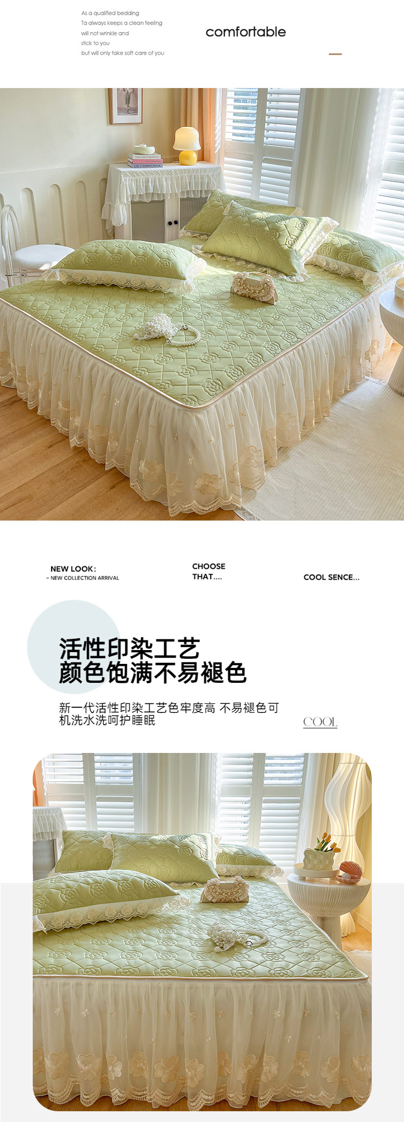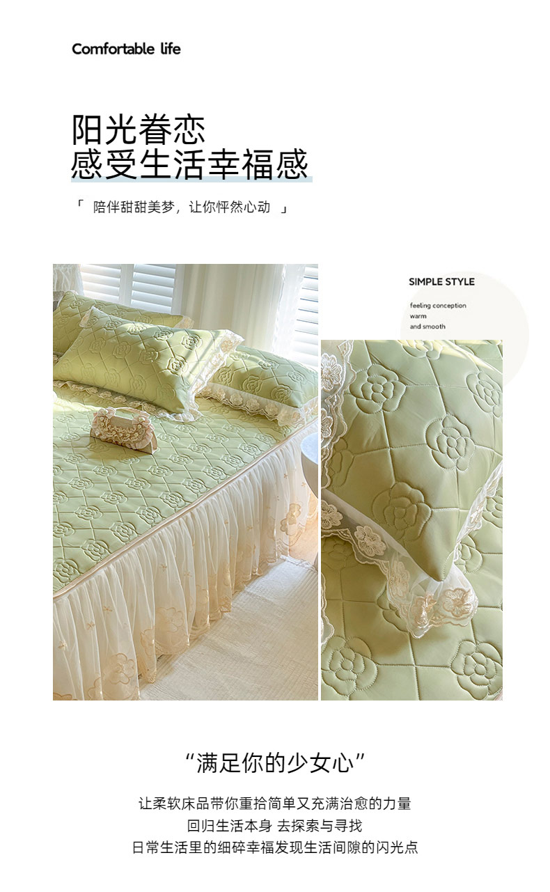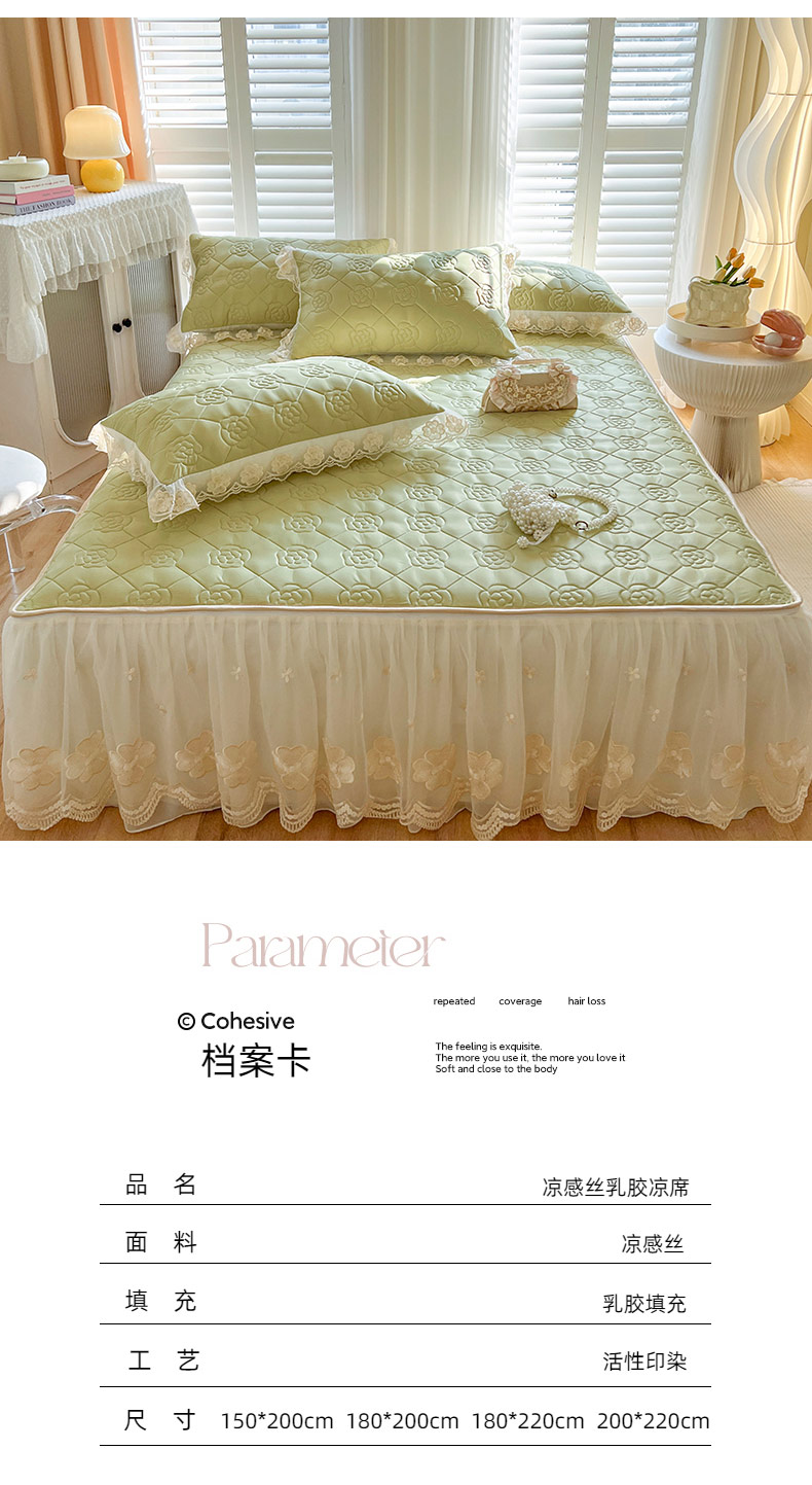 商品名称:麒豆豆 2024新款凉感丝乳胶凉席夏被四件套床裙款 豆蔻绿