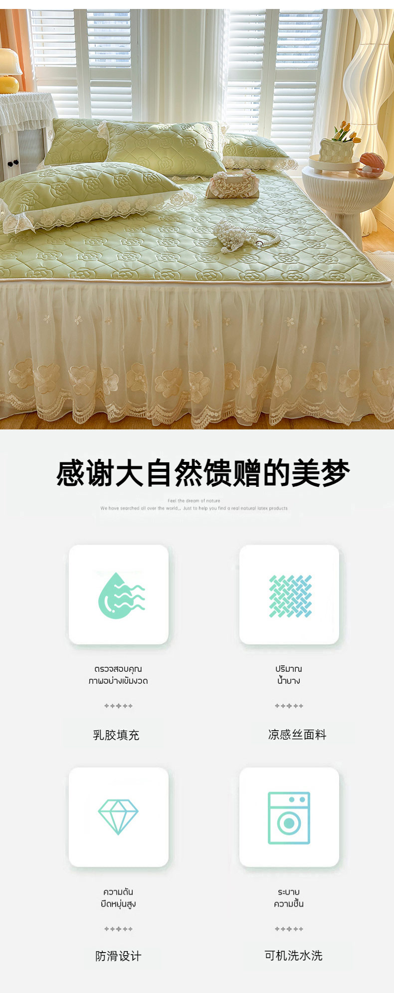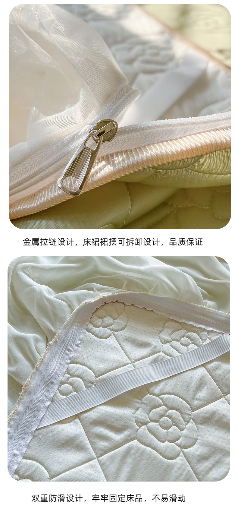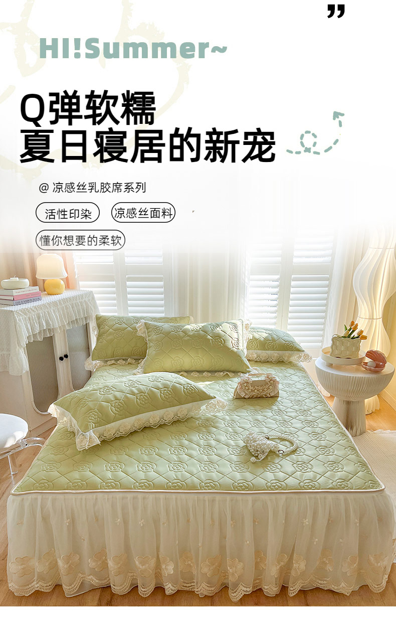 (总)麒豆豆2025新款凉感丝床笠式床裙乳胶凉席,白,粉,灰,蓝,绿,驼,玉,紫