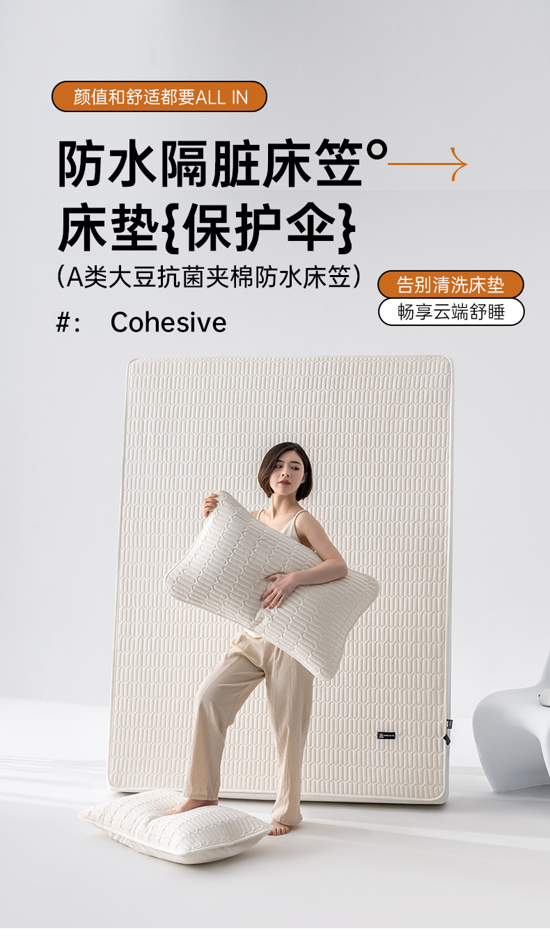 • 91家纺网 家纺一手货源 找家纺 X猫先生 2024新款A类母婴防水床笠大豆抗菌夹棉床笠床垫保护罩(模特图) 丽莎-米白