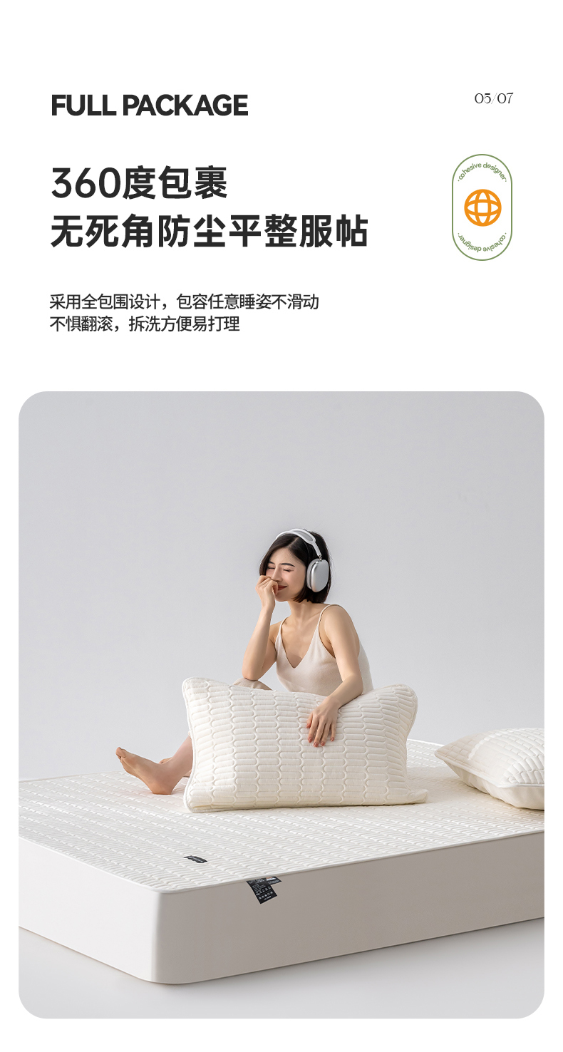 X猫先生 2024新款A类母婴防水床笠大豆抗菌夹棉床笠床垫保护罩(模特图) 丽莎-米白