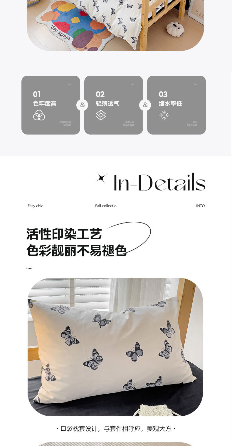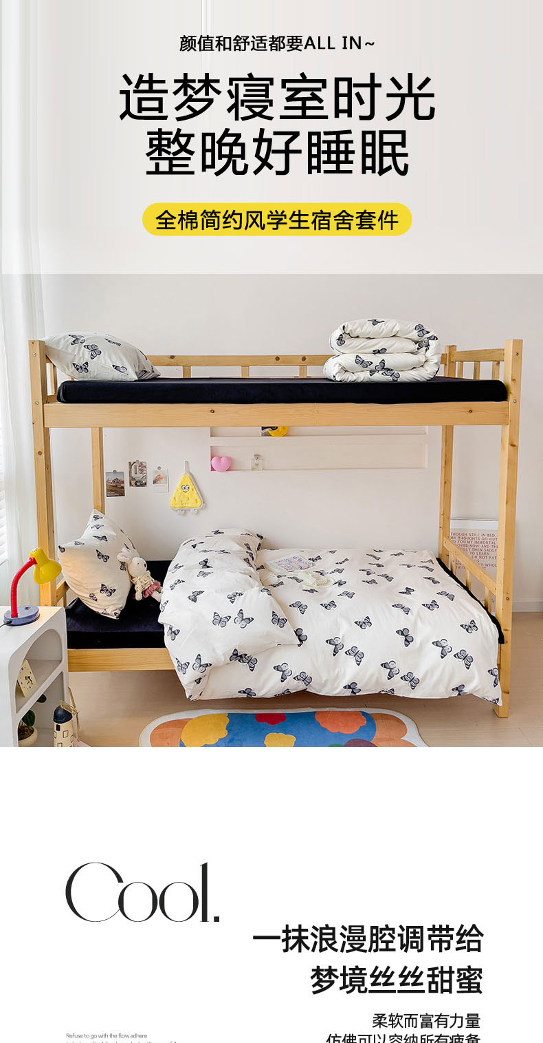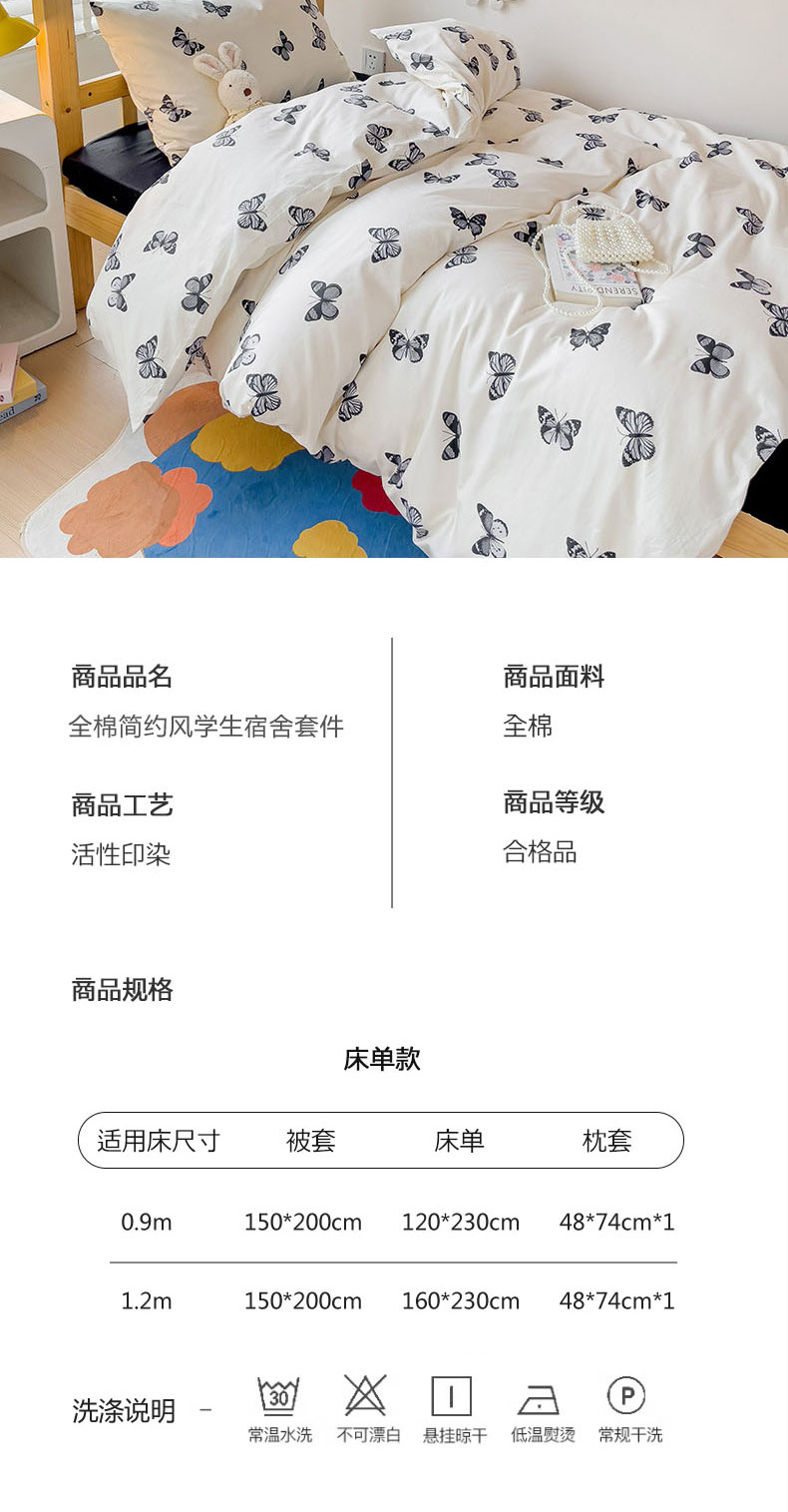 商品名称:梦家居 2024新款全棉简约风学生宿舍三件套 蝶影