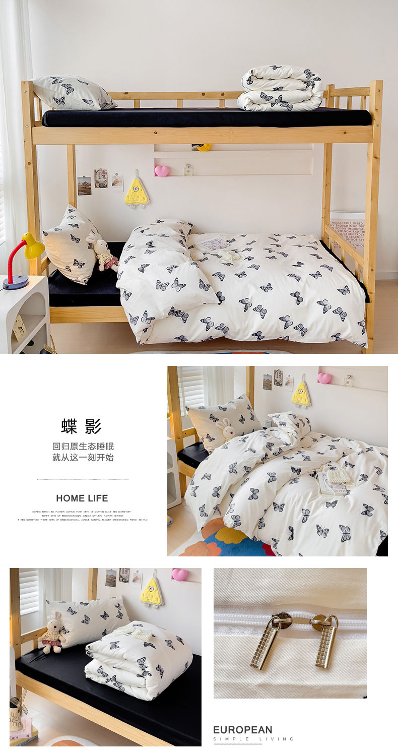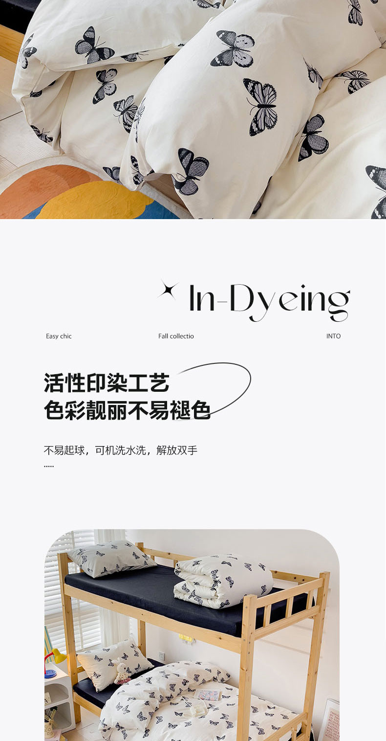 梦家居 2024新款全棉简约风学生宿舍三件套 蝶影
