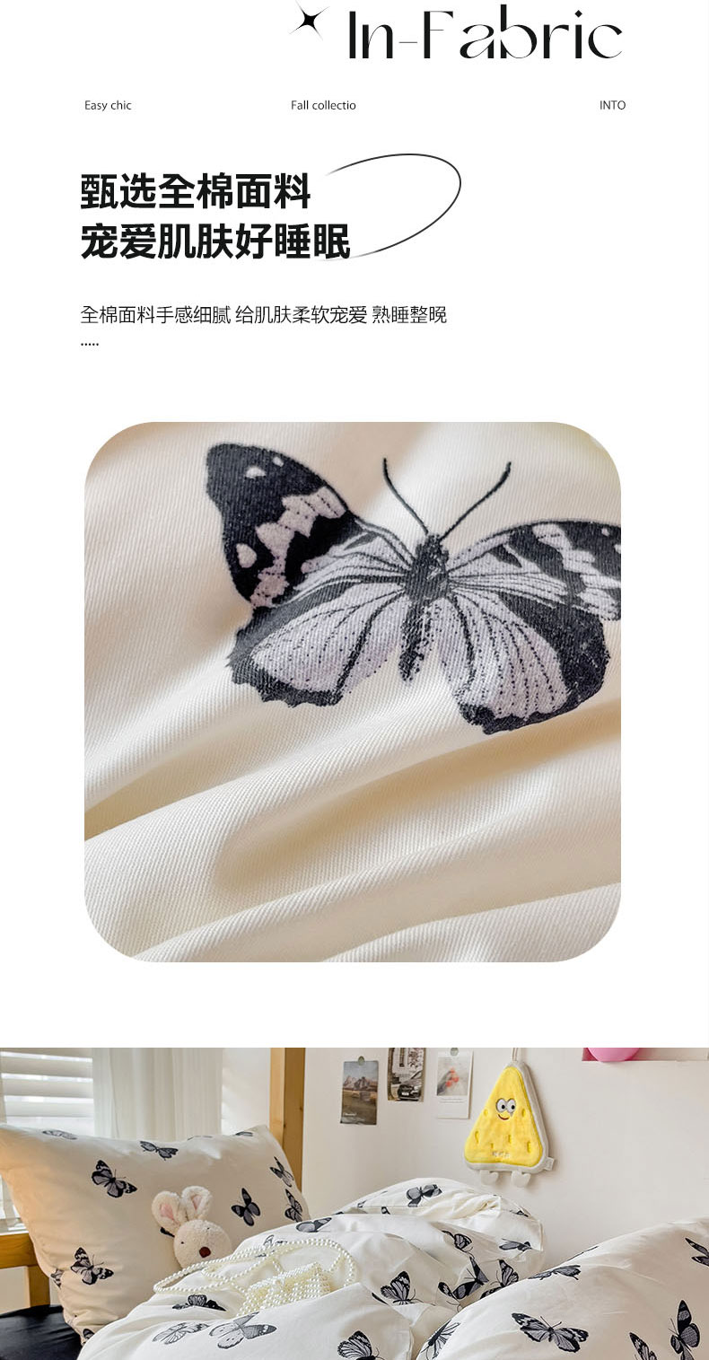 (总)梦家居 2024新款全棉简约小清新蝶影四件套,蝶影