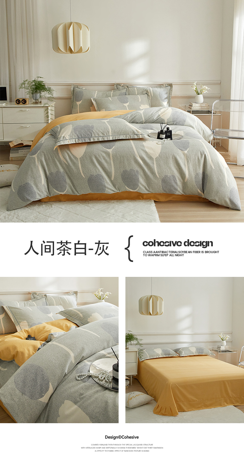 当前位置: 91家纺网 > 商品网购 > 床品套件 > 四件套 > 全棉普通四件套 > 沐白家居 2024新款全棉生态磨毛印花四件套系列 人间茶白-灰