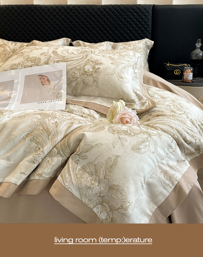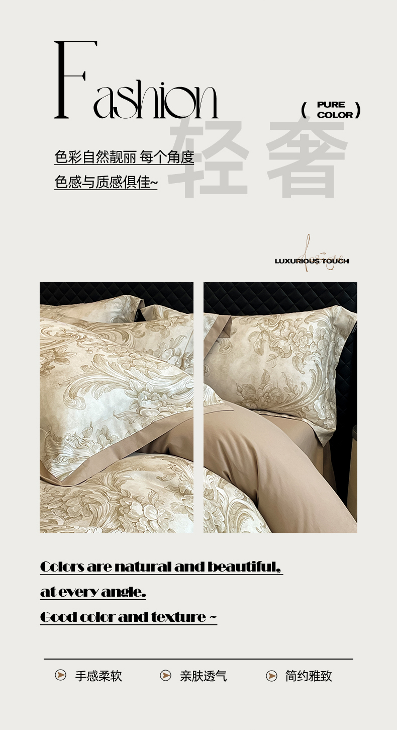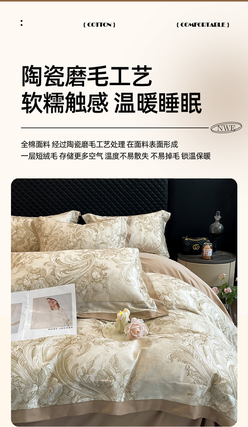 (总)2023新款全棉四件套-富贵花,奶昔白,温柔粉,星辰蓝
