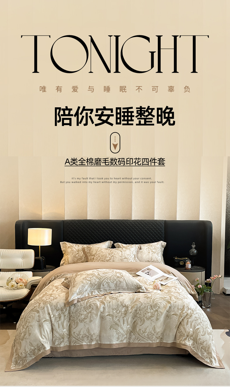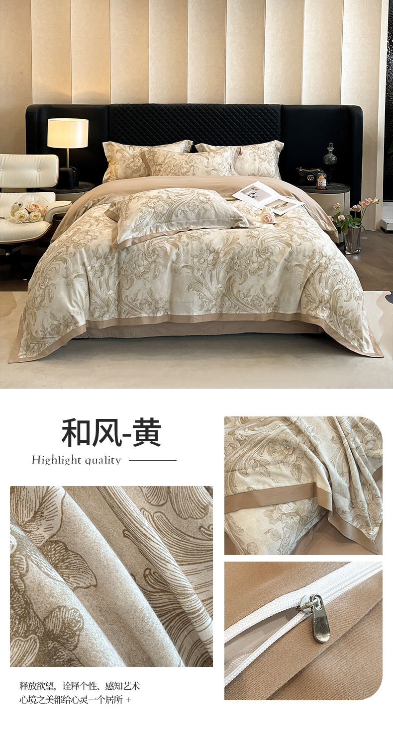 商品名称:安妮家居 2024新款A类全棉陶瓷数码印花四件套 和风-黄