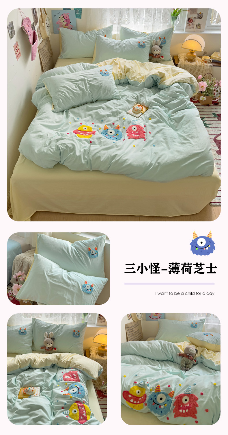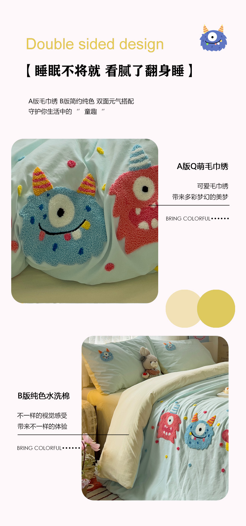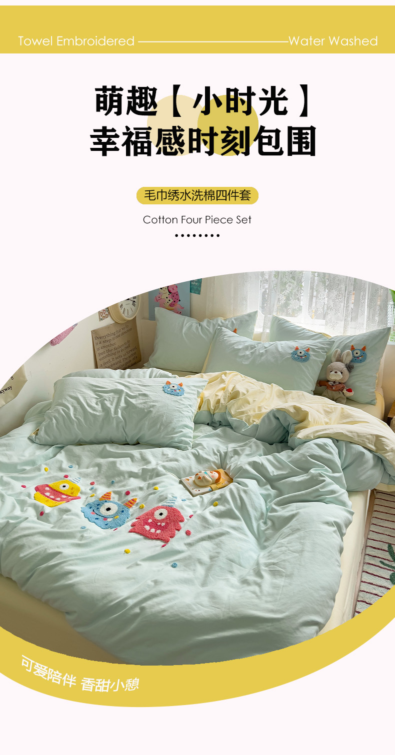 当前位置: 91家纺网 > 商品网购 > 床品套件 > 四件套 > 毛巾绣四件套 > 曼谷家纺 2025新款软糯毛巾绣水洗棉四件套-【买家秀联系微信】专属版权,质检报告 三小怪-薄荷芝士