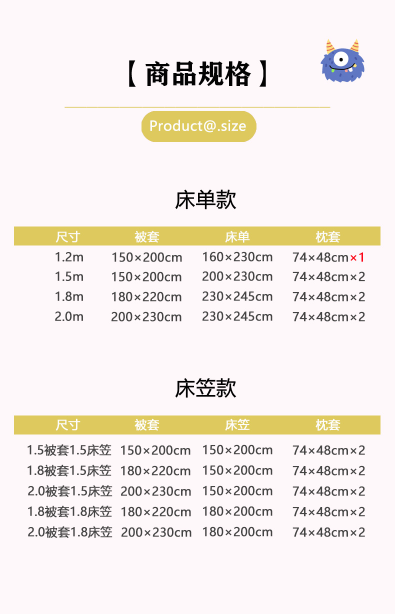 1.8m床笠四件套被套200x230 | ¥69.00 |