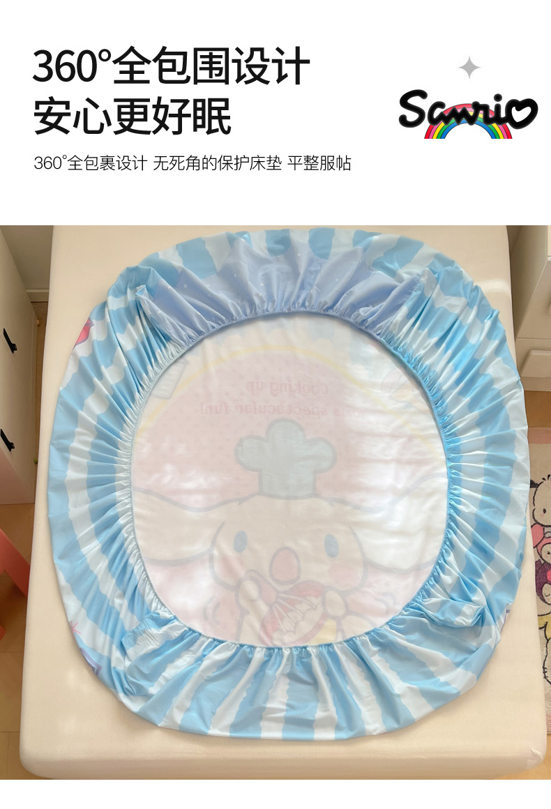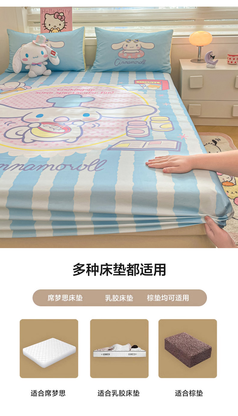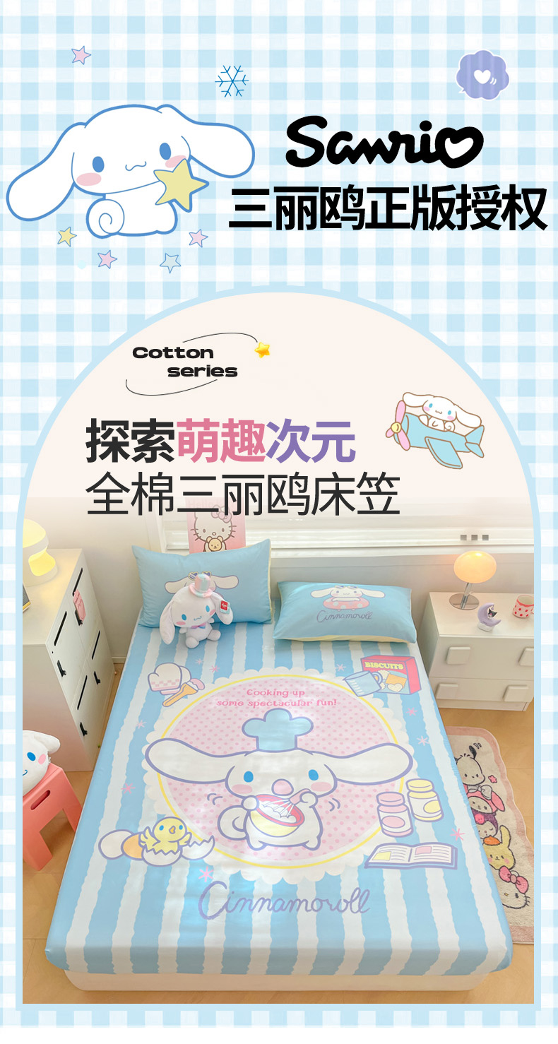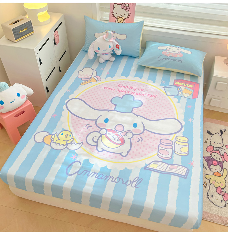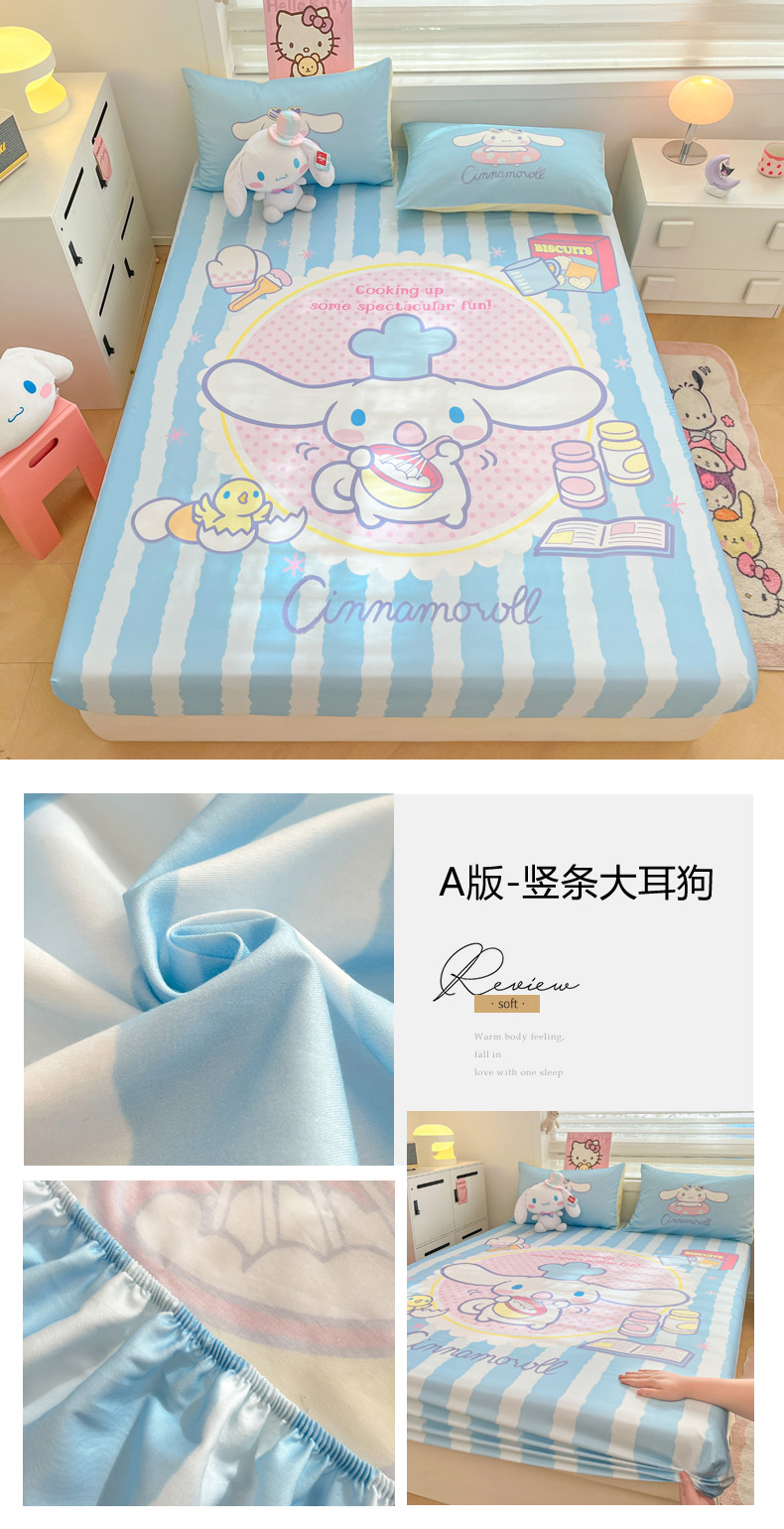 暮思家居 2025新款正版授权三丽鸥大阪全棉数码印花纯棉单品床笠(第二批) A版-竖条大耳狗