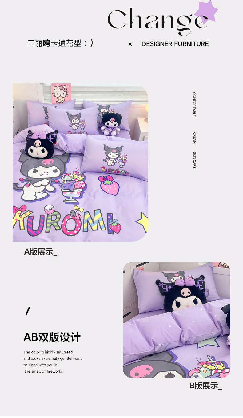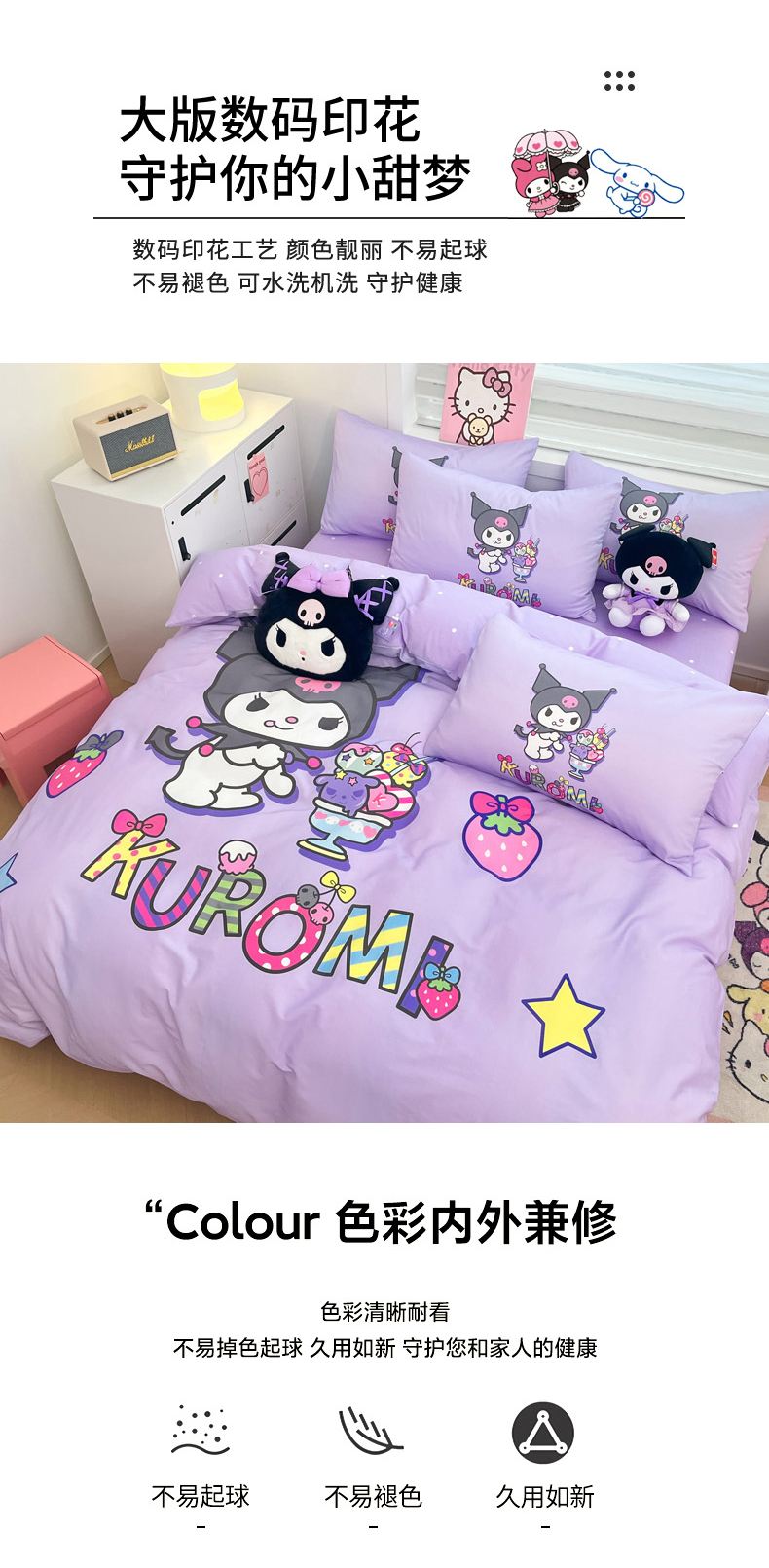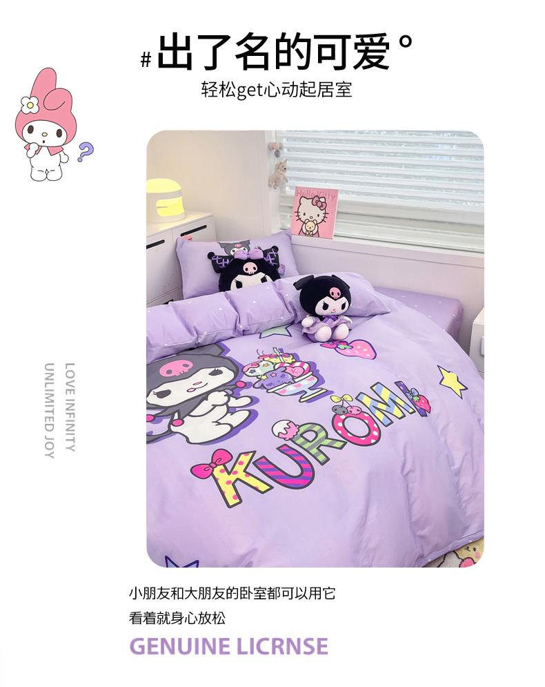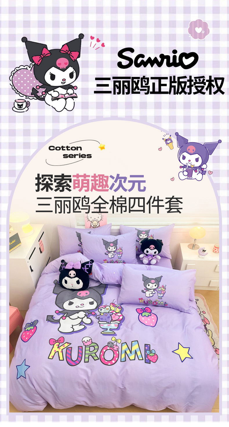 当前位置: 91家纺网 > 商品网购 > 床品套件 > 四件套 > 全棉普通四件套 > 暮思家居 2025新款正版授权三丽鸥大阪全棉数码印花纯棉四件套(第三批) 大版-草莓库洛米