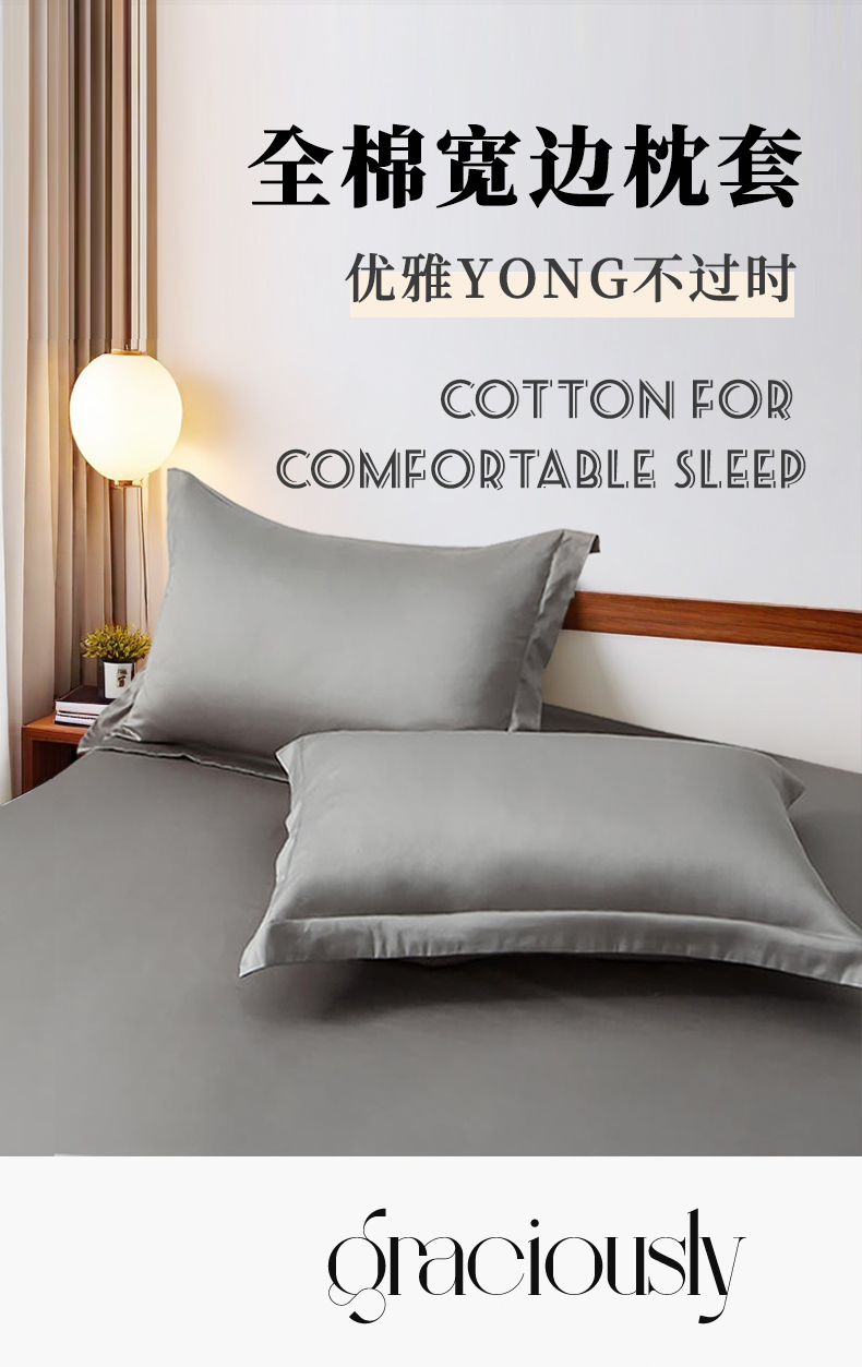 商品名称:金喜 2025新款全棉枕套喷气全棉宽边枕套枕头套-优雅系列 优雅-深烟灰