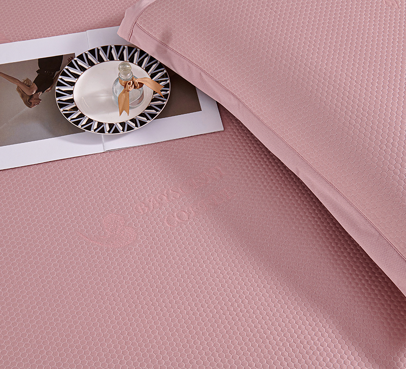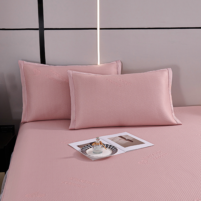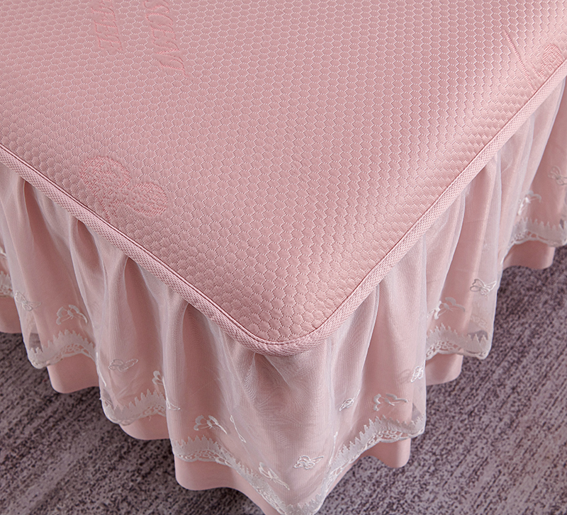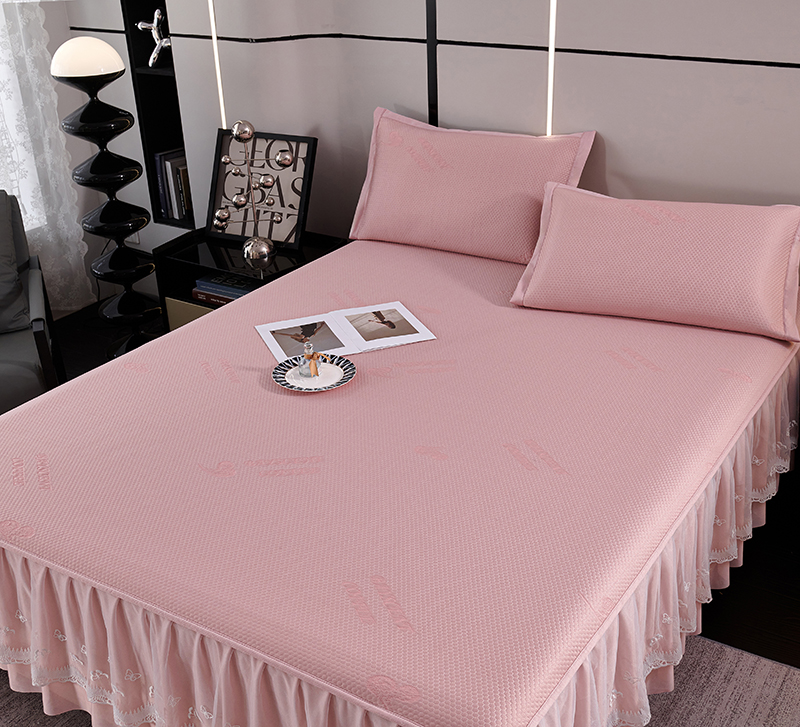 青雅席业 2025新款7A抗菌母婴级纯乙纶PE刺绣凉感丝豆豆席 床裙款 字母爱心-粉