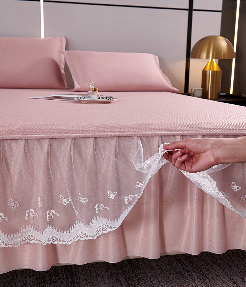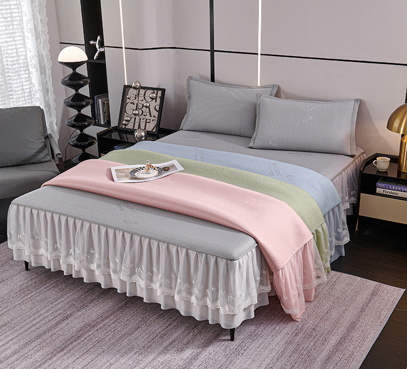 (总)青雅席业 2025新款舒适亲肤凉感冰豆豆网纱花边凉席,粉色,灰色,咖色,蓝色,绿色