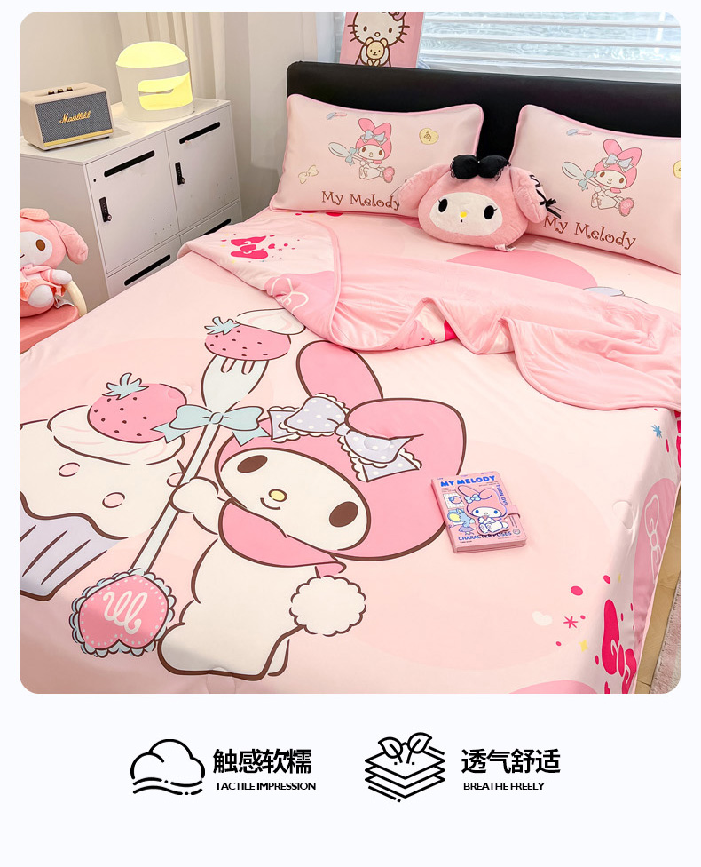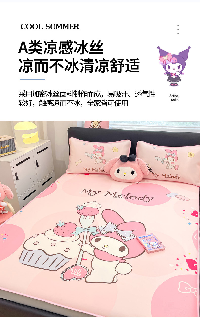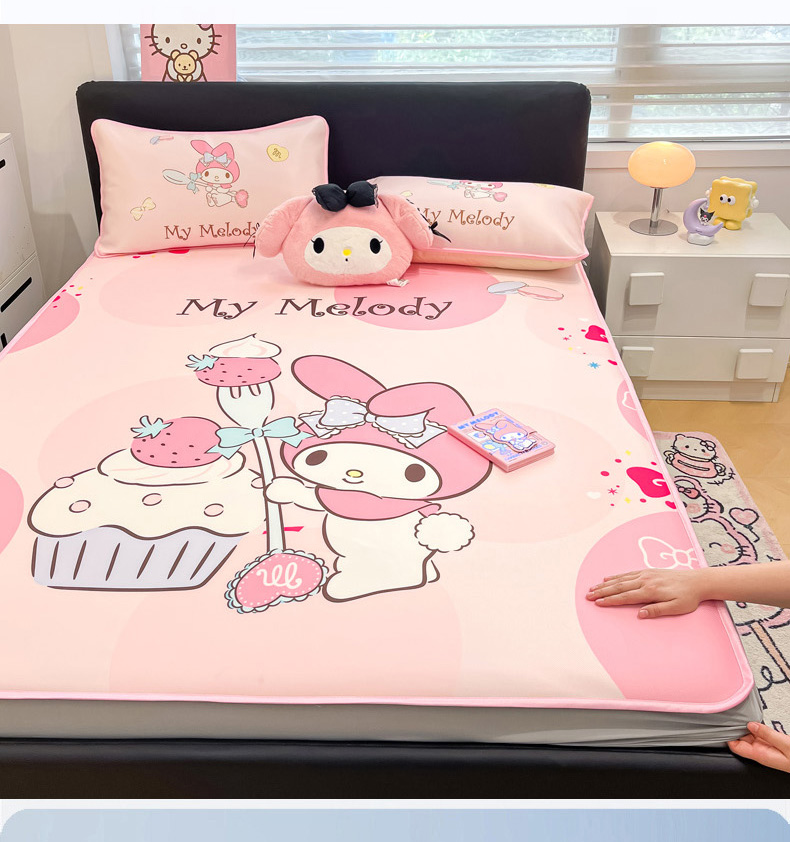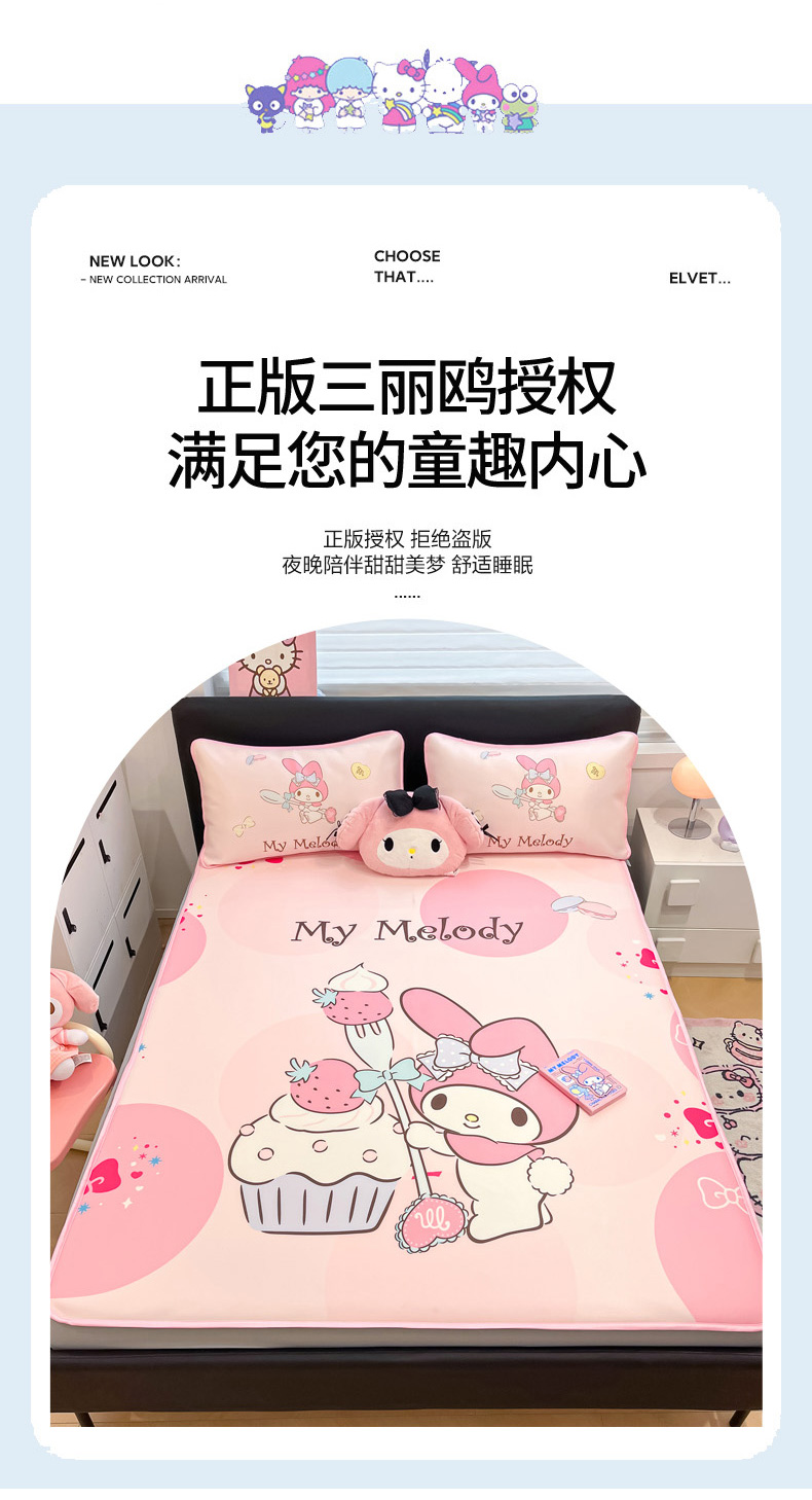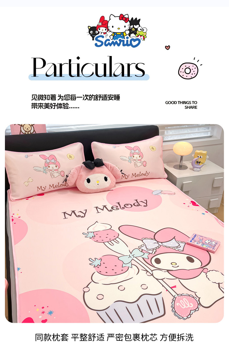 • 91家纺网 家纺一手货源 找家纺 暮思家居 2025新款正版授权A类大版数码印花三丽鸥可机洗1200D冰丝凉席可组合针织棉夏被四件套床笠款 床笠款-蛋糕美乐蒂