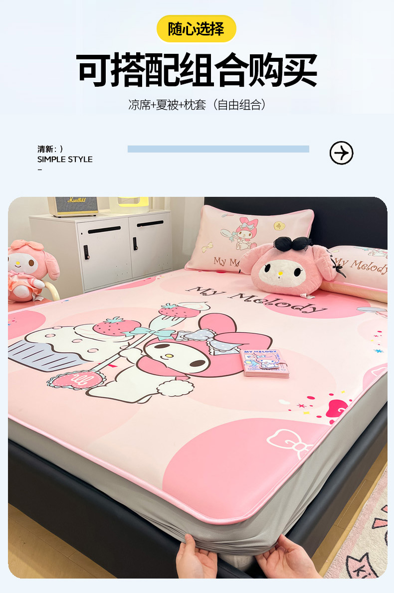 当前位置: 91家纺网 > 商品网购 > 床上用品 > 凉席 > 暮思家居 2025新款正版授权A类大版数码印花三丽鸥可机洗1200D冰丝凉席可组合针织棉夏被四件套床笠款 床笠款-蛋糕美乐蒂