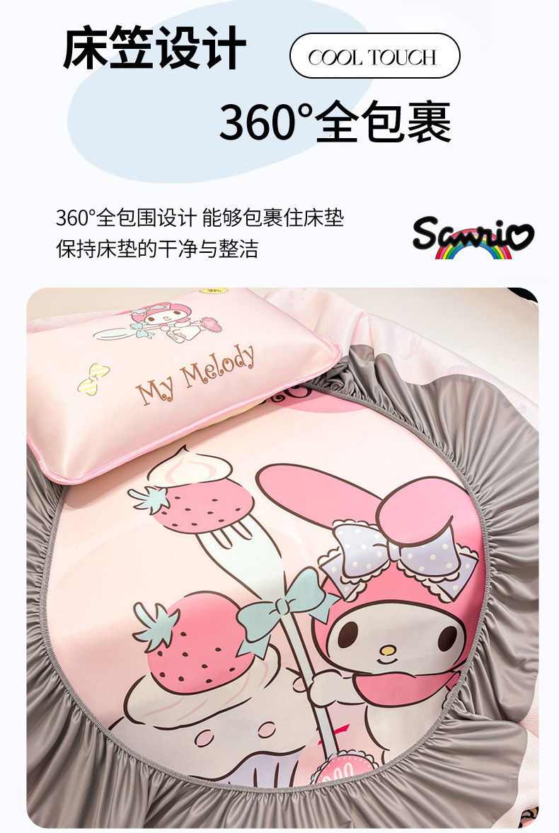 暮思家居 2025新款正版授权A类大版数码印花三丽鸥可机洗1200D冰丝凉席可组合针织棉夏被四件套床笠款 床笠款-蛋糕美乐蒂