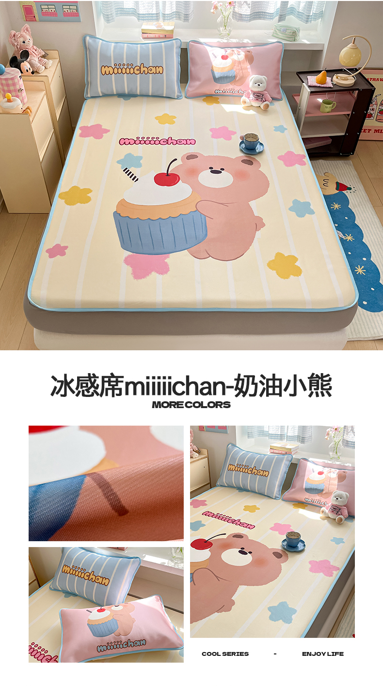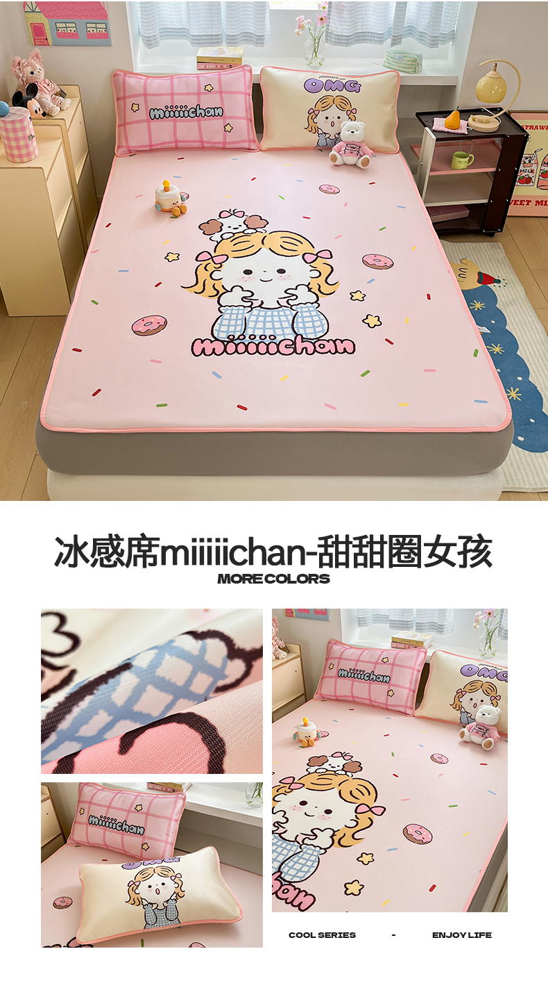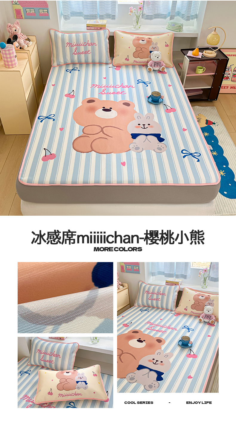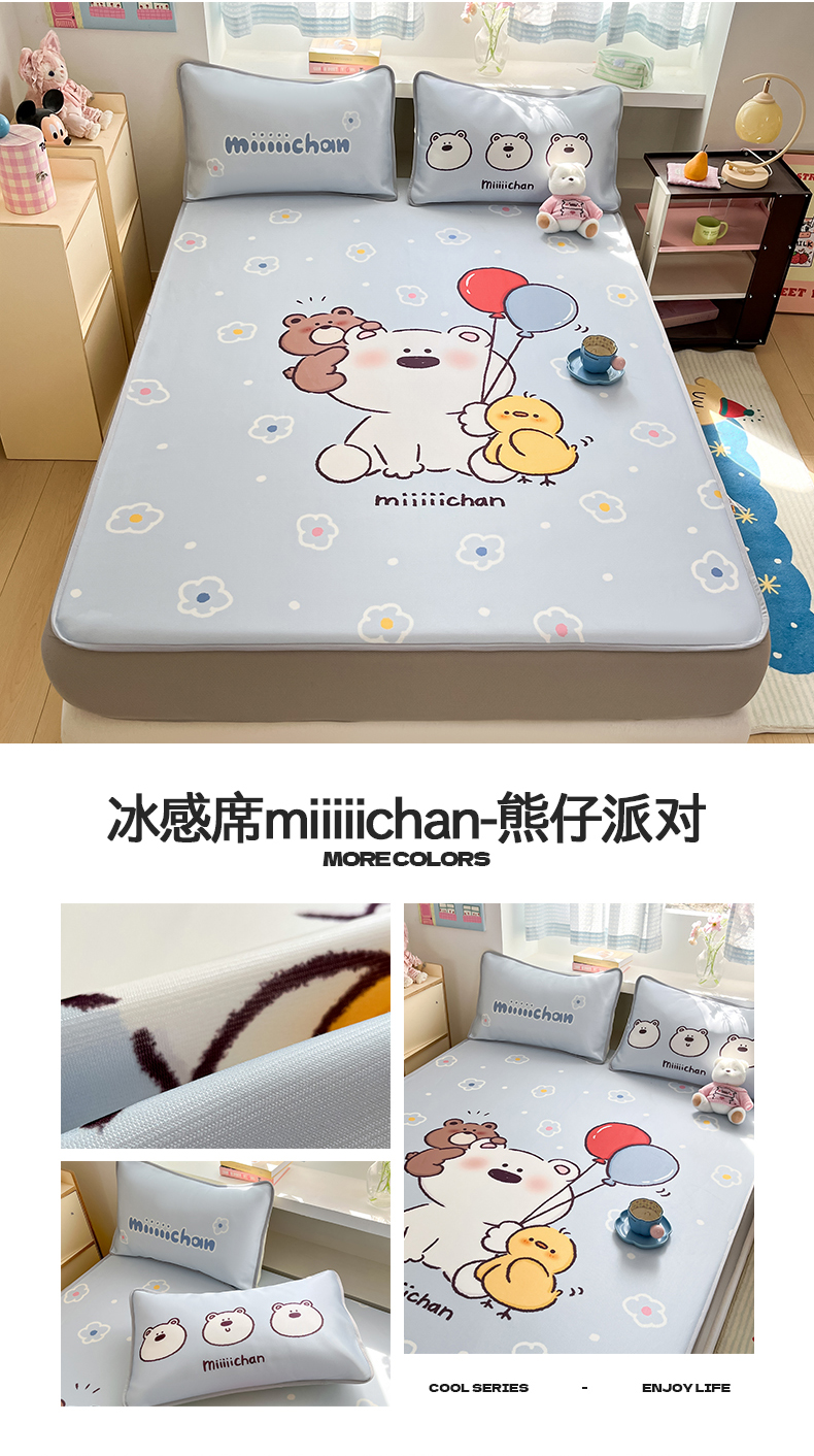 床品套件 > 三件套 > (总)金爱家 2025新款正版授权miiiiichan可爱卡通大版数码印花A类1200D冰感丝凉感席冰丝三件套平铺床笠系列