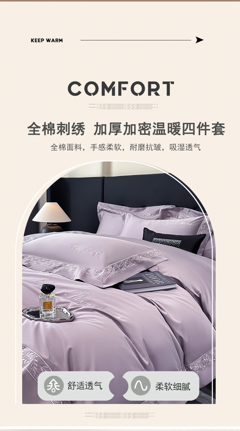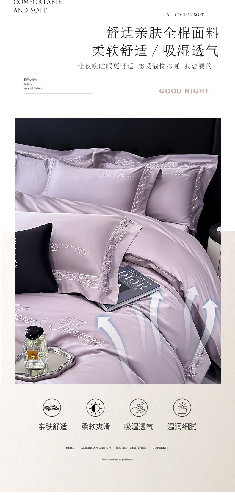 (总)安妮家居 2025新款全棉纯棉100%丝光喷气13376镂空刺绣四件套-海瑟薇,海瑟薇-白,海瑟薇-粉,海瑟薇-蓝,海瑟薇-紫