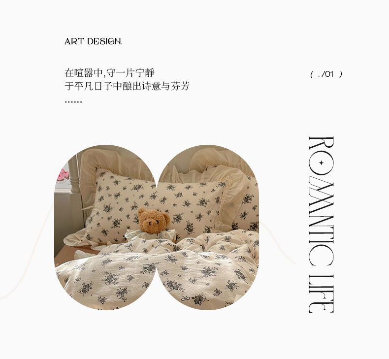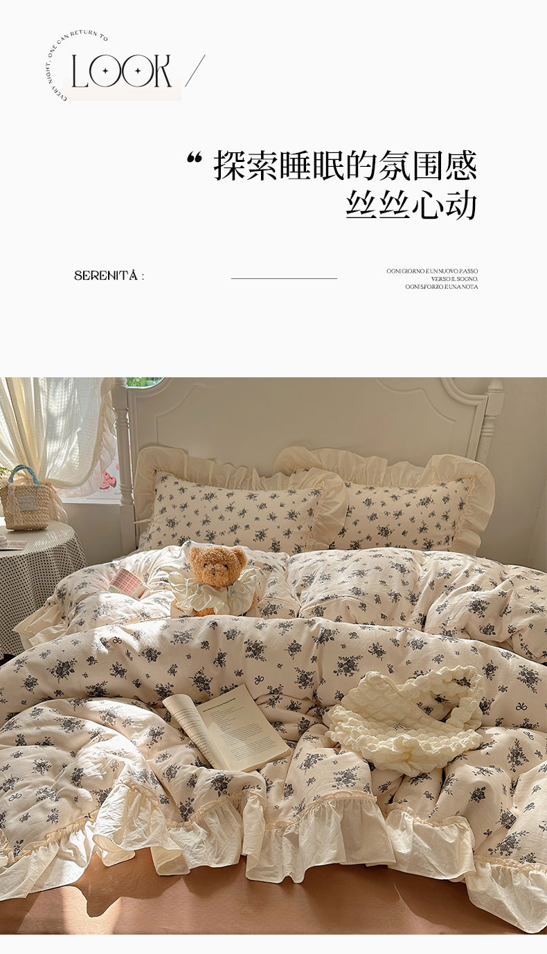 当前位置: 91家纺网 > 商品网购 > 床品套件 > 四件套 > 双层纱四件套 > 六巷胡同2025新款法式小碎花a类全棉双层纱花边款四件套 双层纱-暮秋千寻