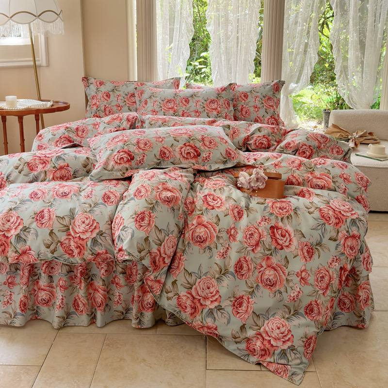 (总)雨田家纺 2025新款亲肤棉印花床裙四件套-系列一,繁花,富贵年华,千山万水棕,青春,诗情画意绿,唯爱花季兰,新动力棕