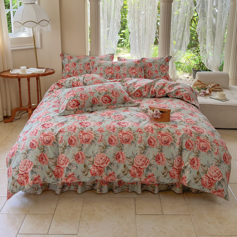 (总)雨田家纺 2024新款亲肤棉印花床裙四件套,出水芙蓉-兰,出水芙蓉-棕,初遇见,花容月貌-灰,如花似锦-绿,春暖花开,梦露花园,香草