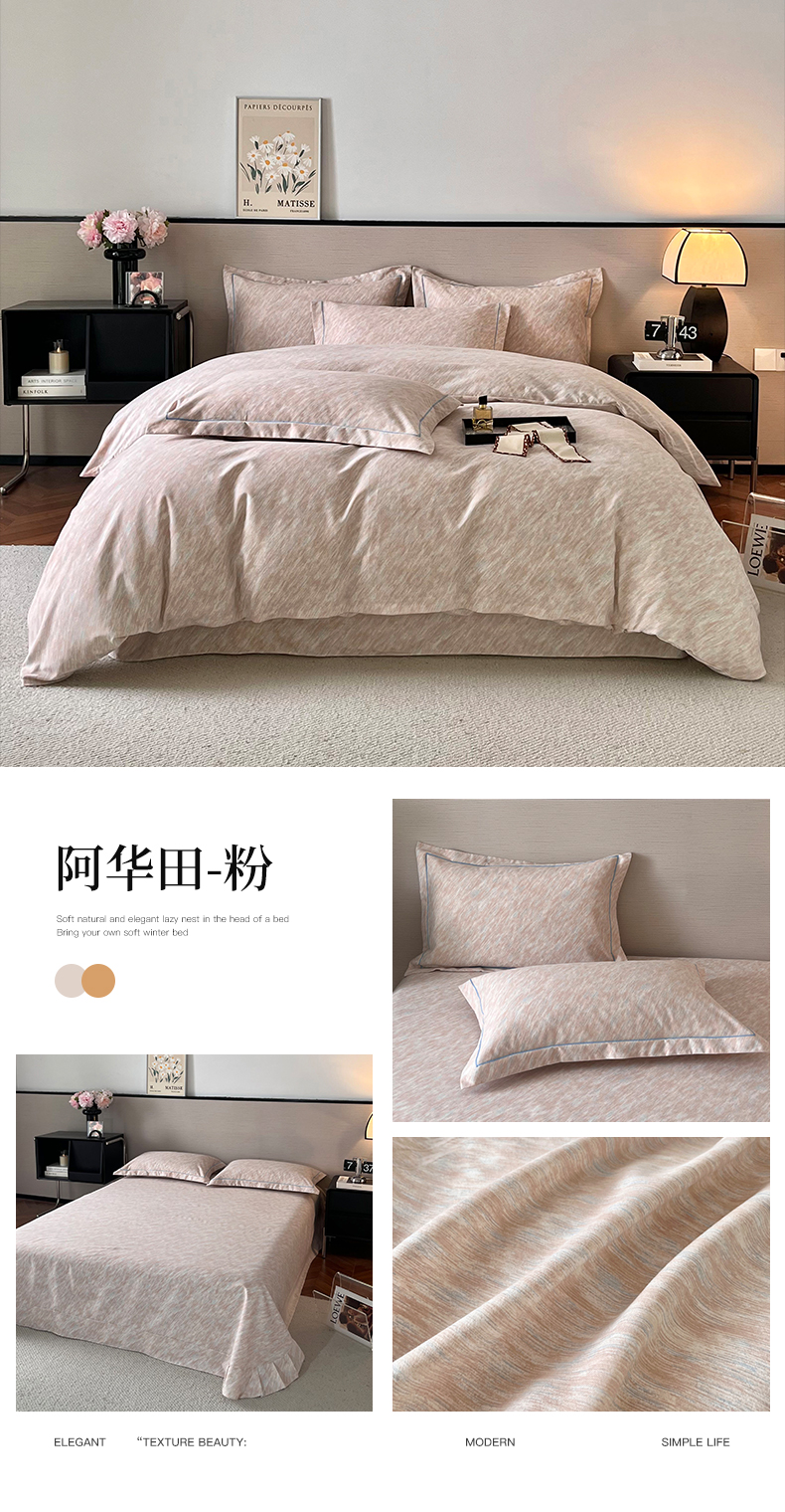 当前位置: 91家纺网 > 商品网购 > 床品套件 > 四件套 > 全棉普通四件套 > 帛美家纺 2025年新款加厚纯棉全棉磨毛印花四件套 阿华田-粉