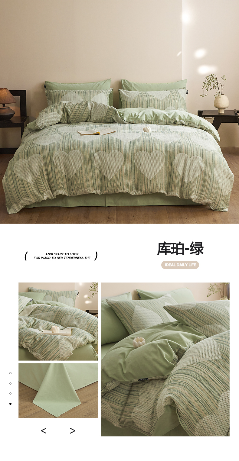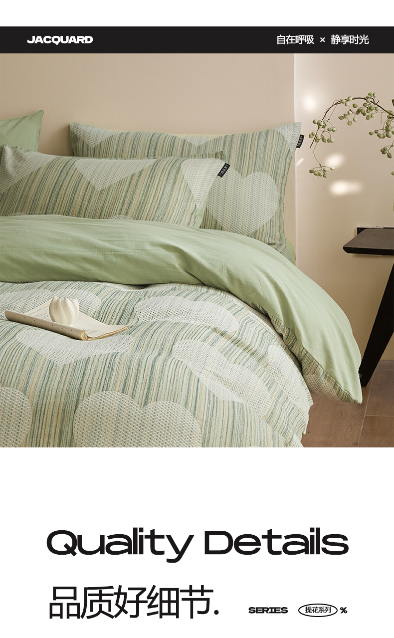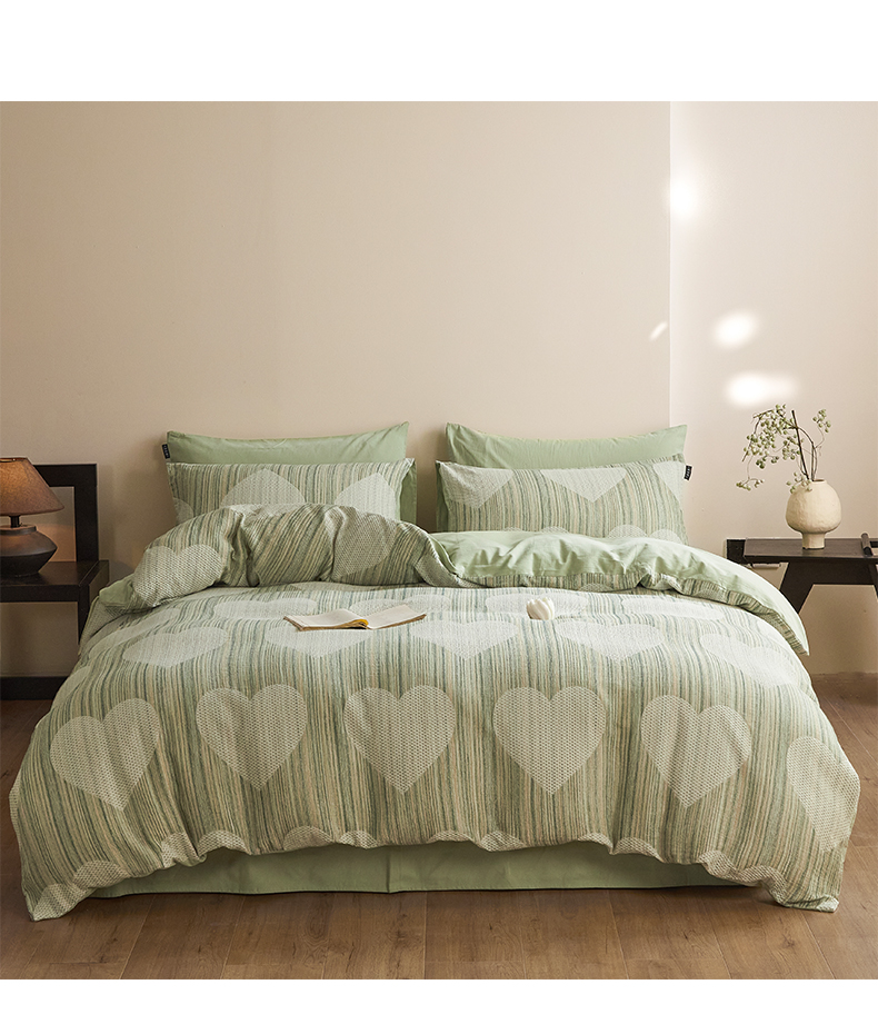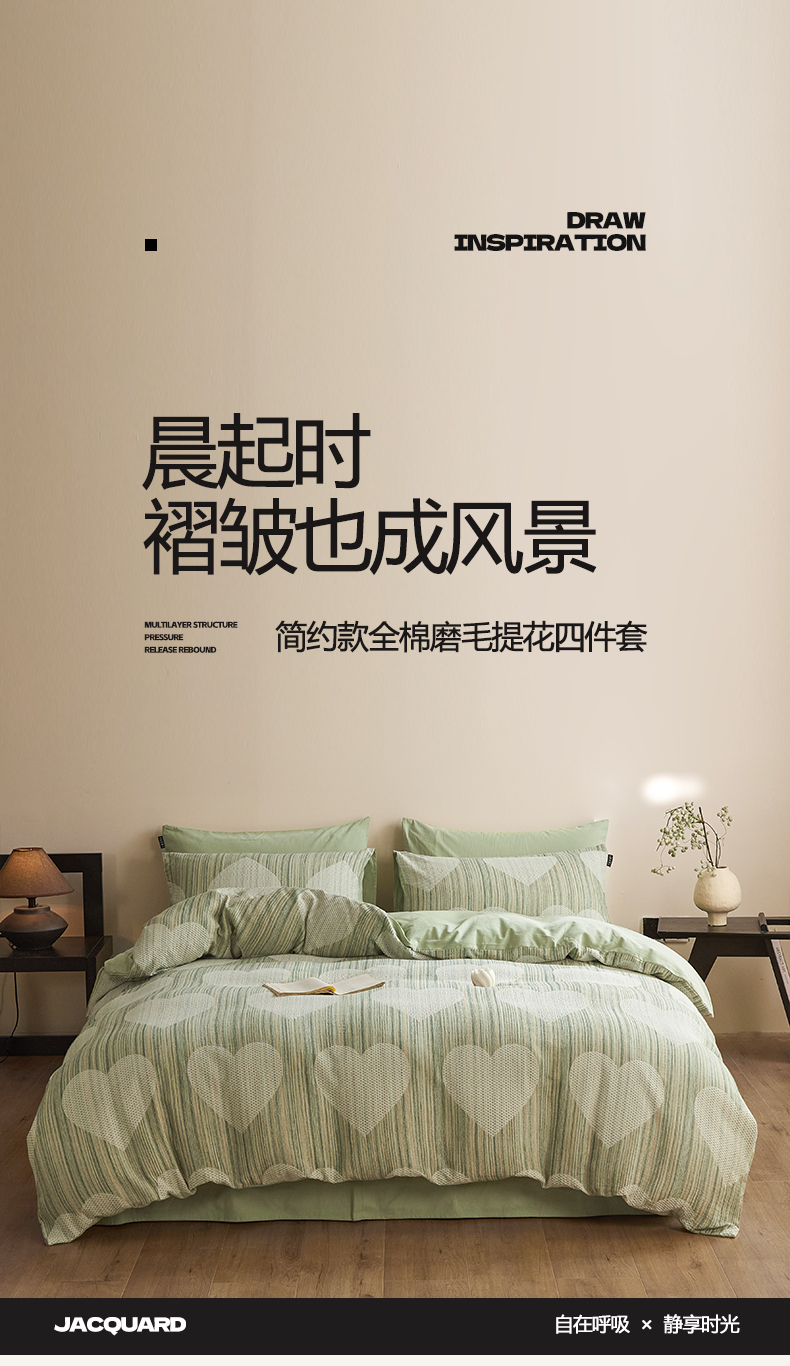商品名称:涵宸家纺 2025新款简约款全棉磨毛提花四件套-未眠 库珀-绿