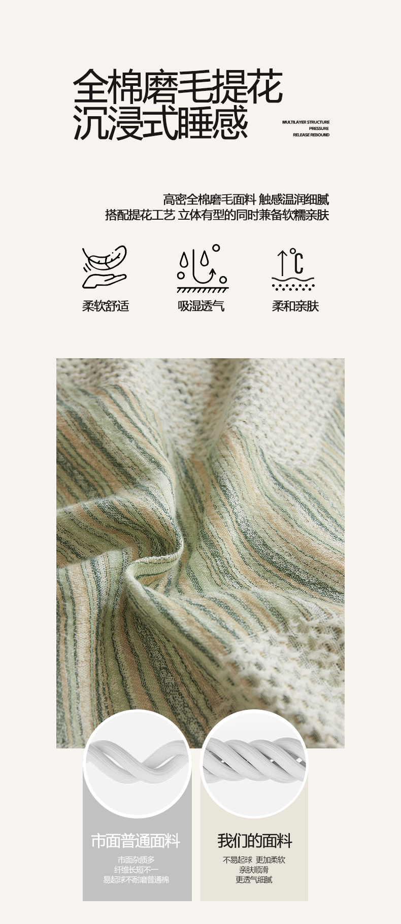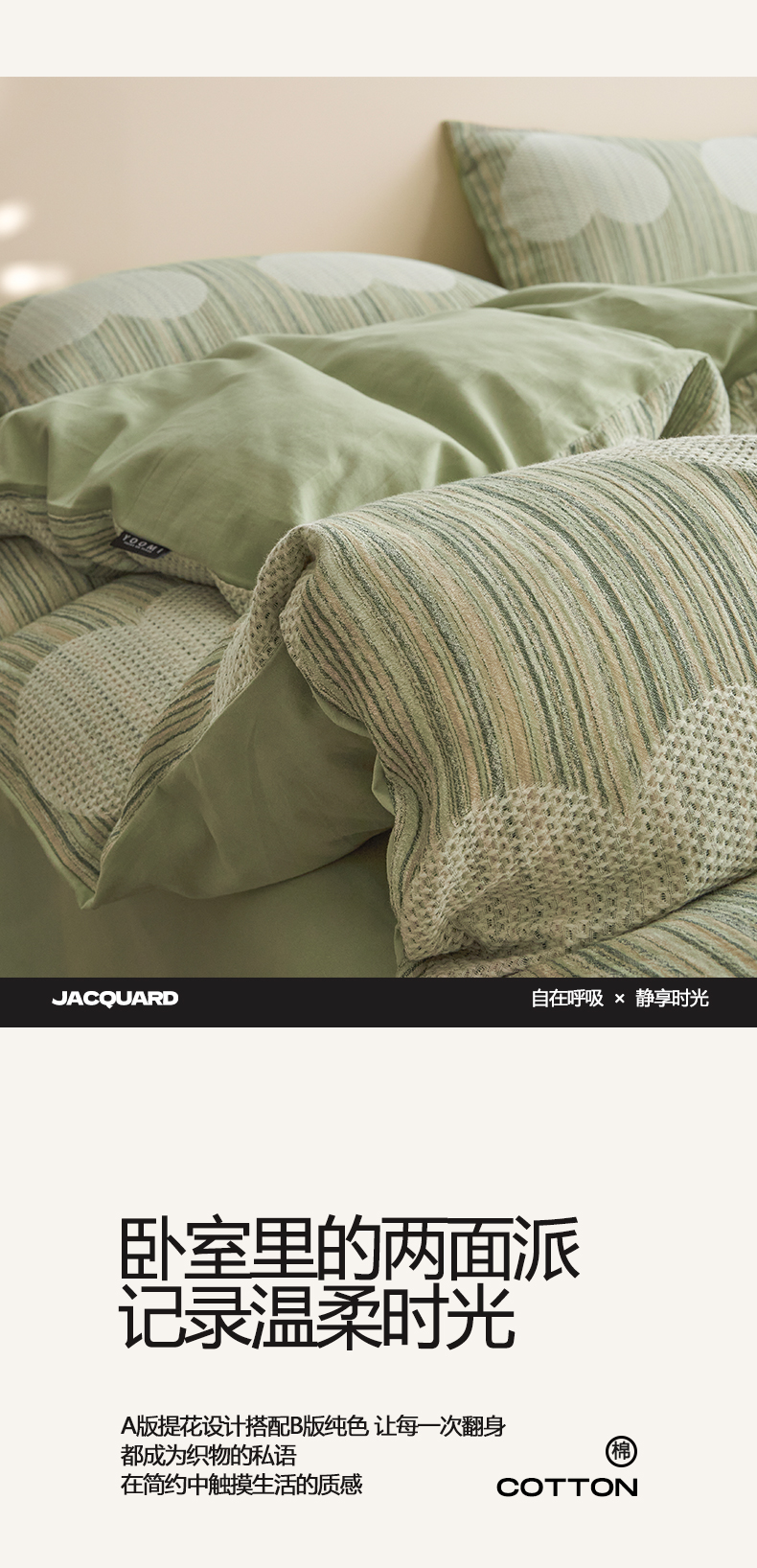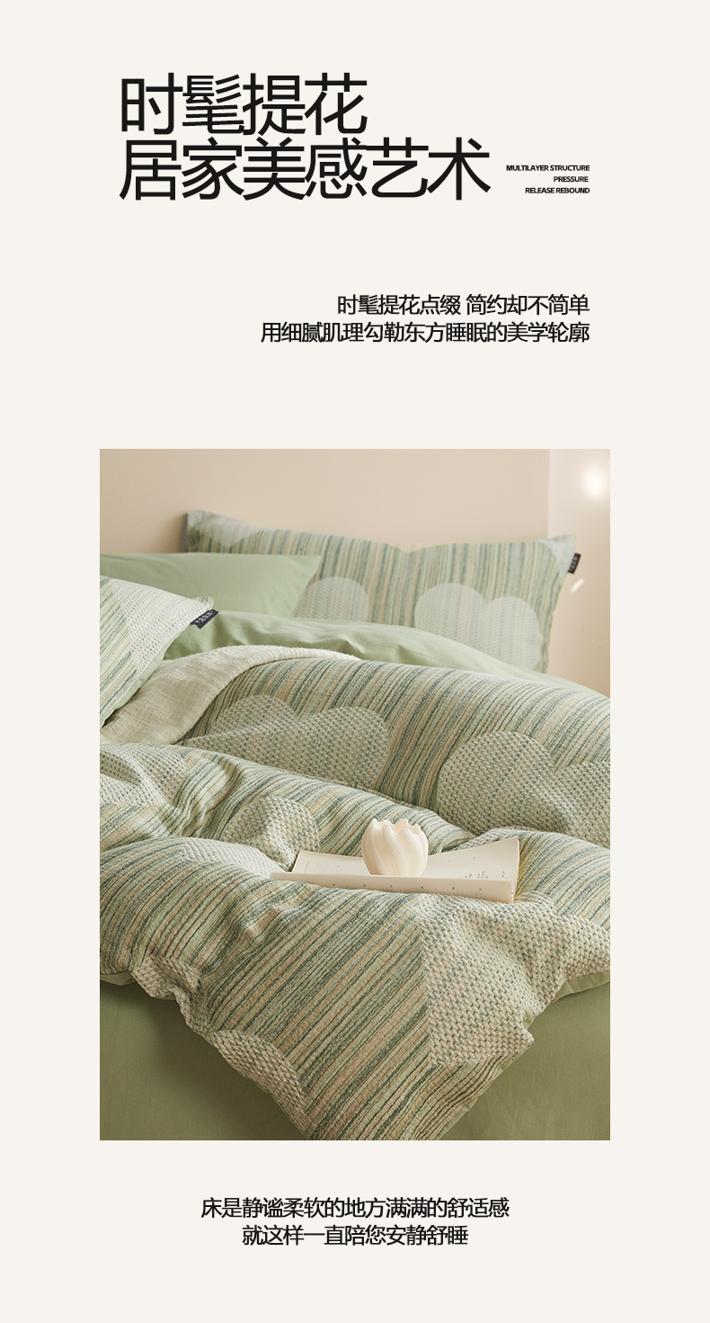 商品名称:涵宸家纺 2025新款简约款全棉磨毛提花四件套-未眠 库珀-绿