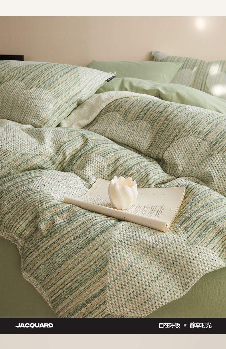 涵宸家纺 2025新款简约款全棉磨毛提花四件套-未眠 库珀-绿