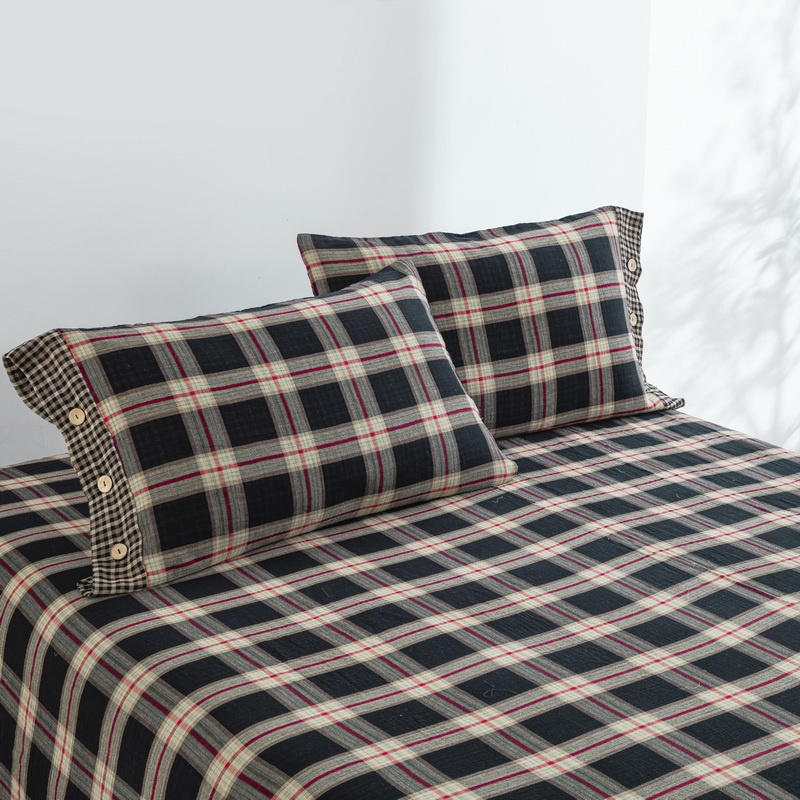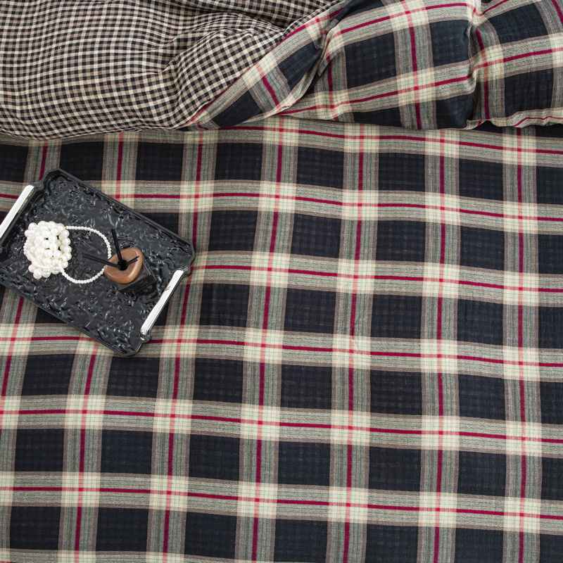 (总)双层纱家居 2025新款黑大格双层纱四件套,黑大格