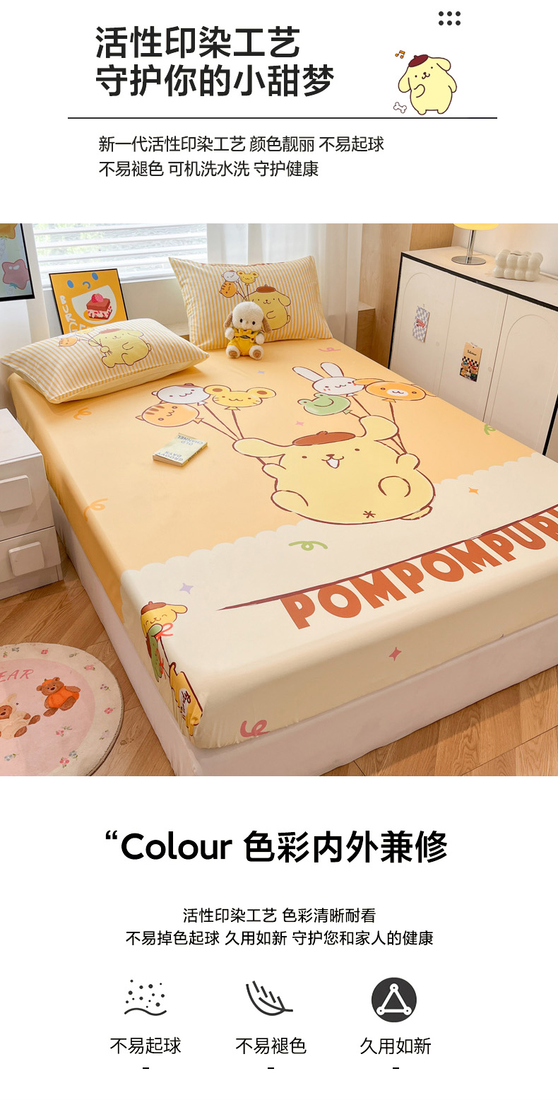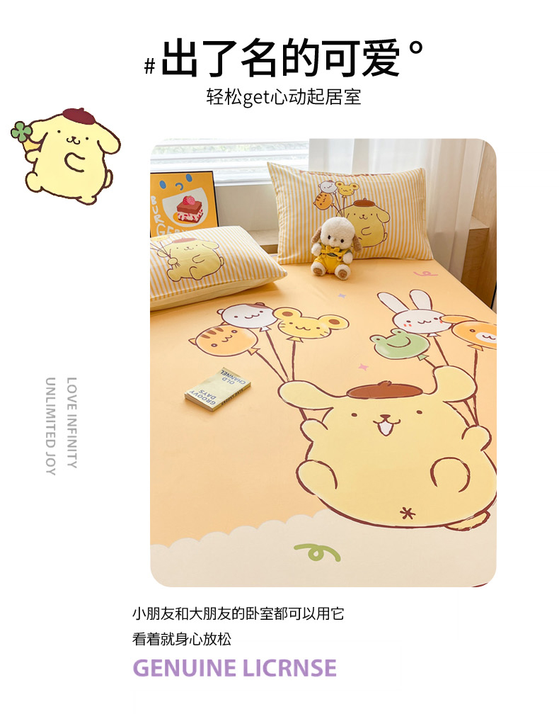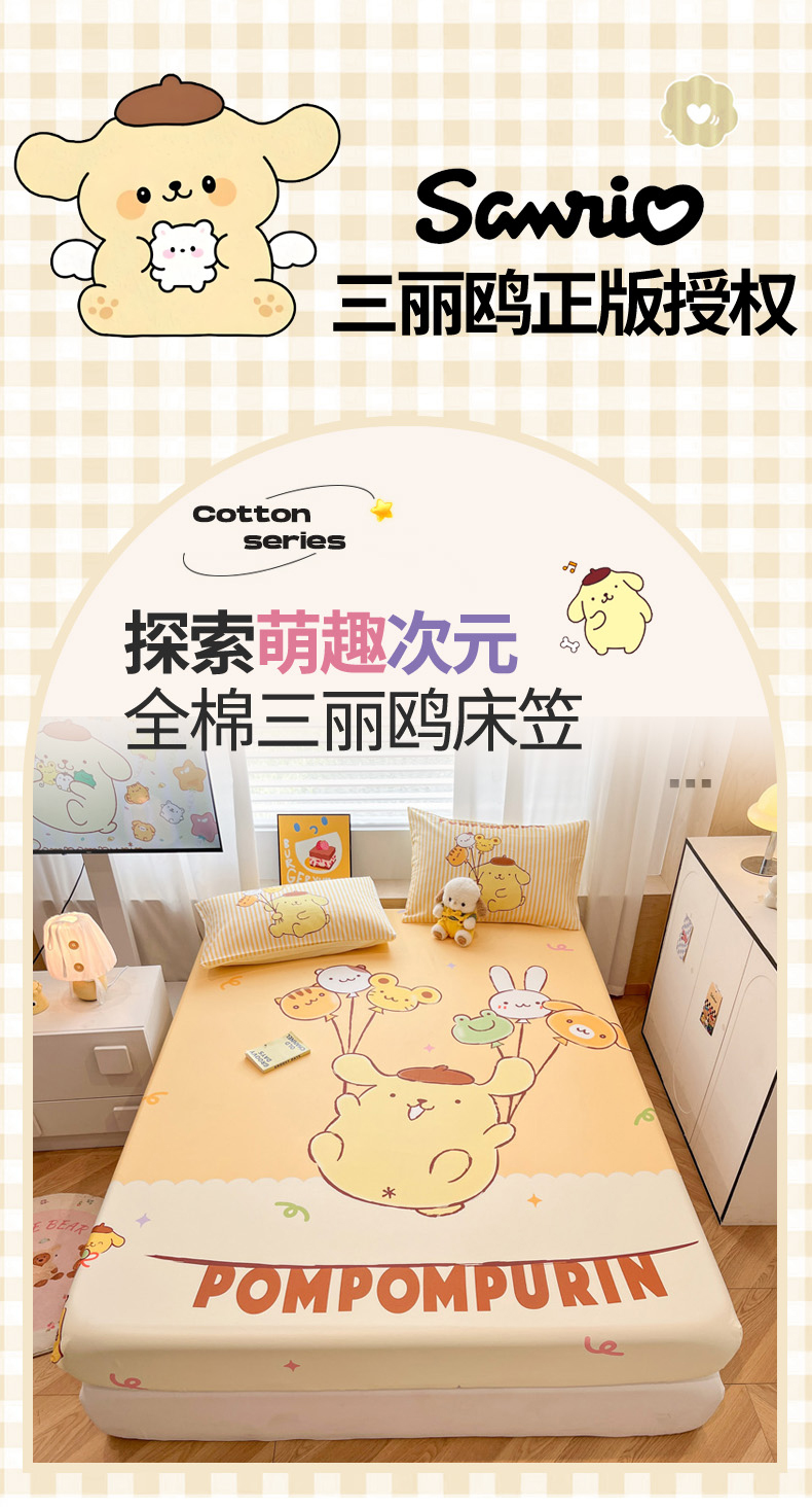 • 91家纺网 家纺一手货源 找家纺 暮思家居 2025新款正版授权三丽鸥大阪全棉数码印花纯棉单品床笠床笠单件单床笠(专版花型) 棉A版-奶黄包布丁狗
