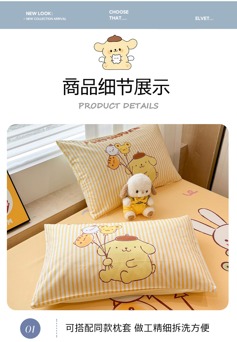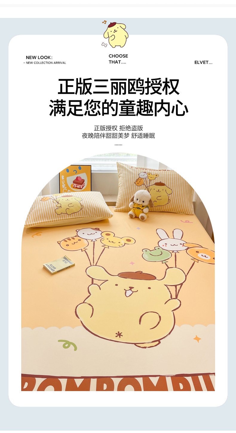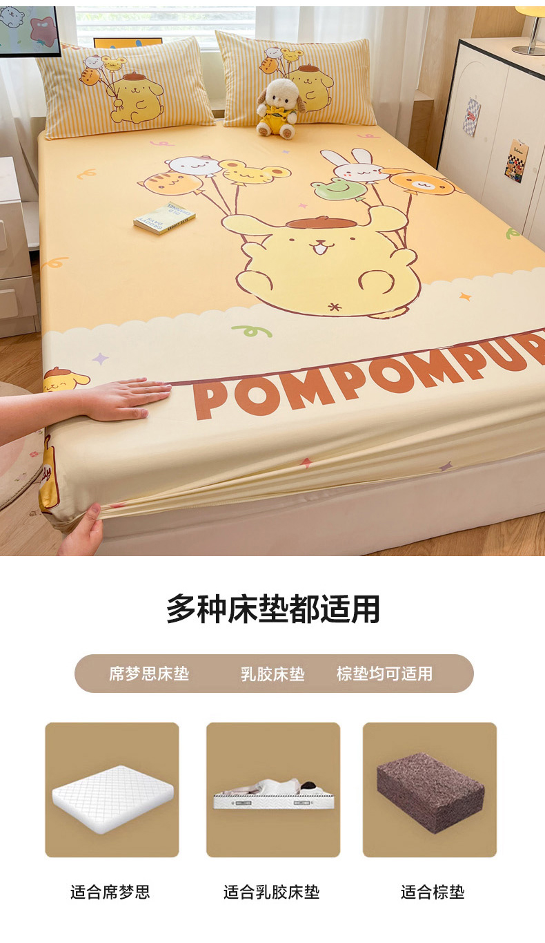 • 91家纺网 家纺一手货源 找家纺 暮思家居 2025新款正版授权三丽鸥大阪全棉数码印花纯棉单品床笠床笠单件单床笠(专版花型) 棉A版-奶黄包布丁狗