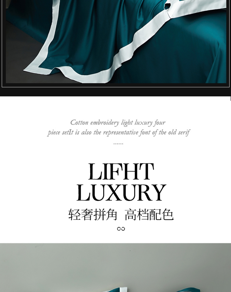 柔觉家纺 天丝刺绣贡缎提花全棉四件套,水汐-绸缎兰