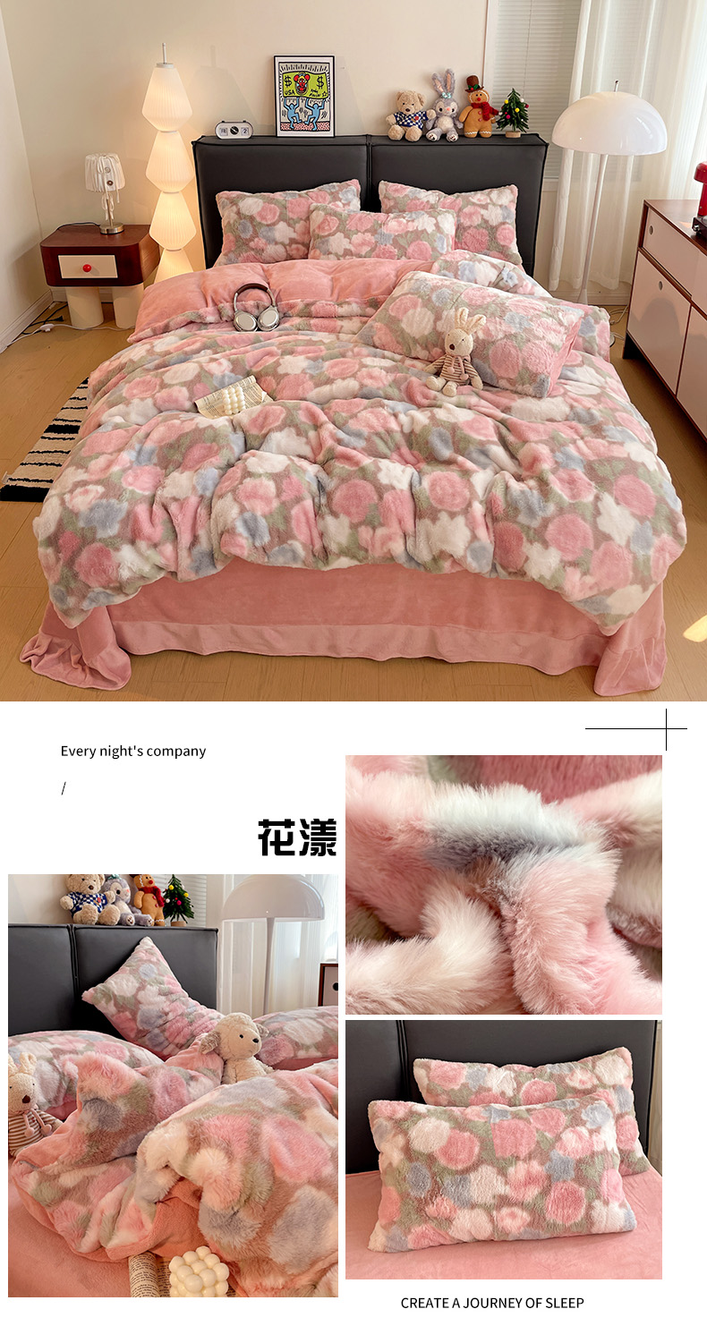 金梦拉 2025直播爆款A类加厚兔绒印花系列四件套 花漾
