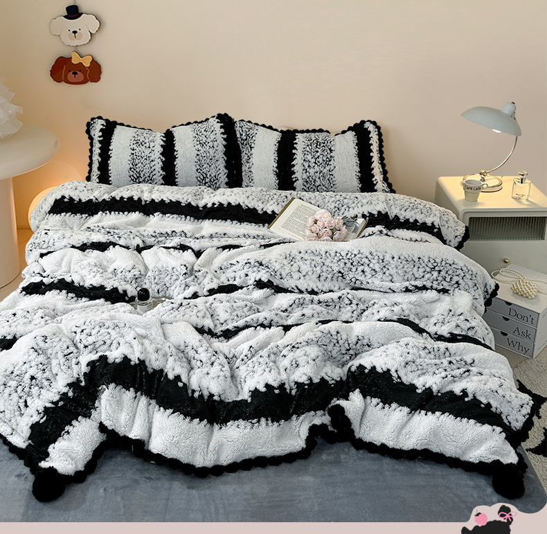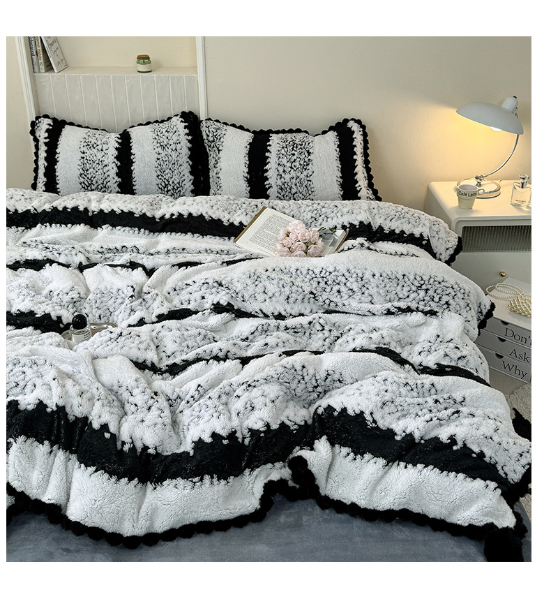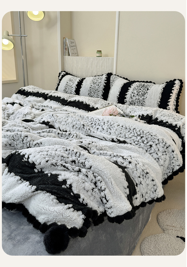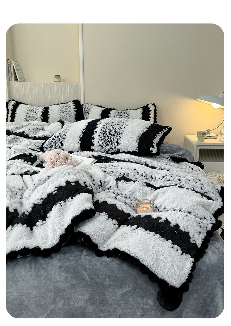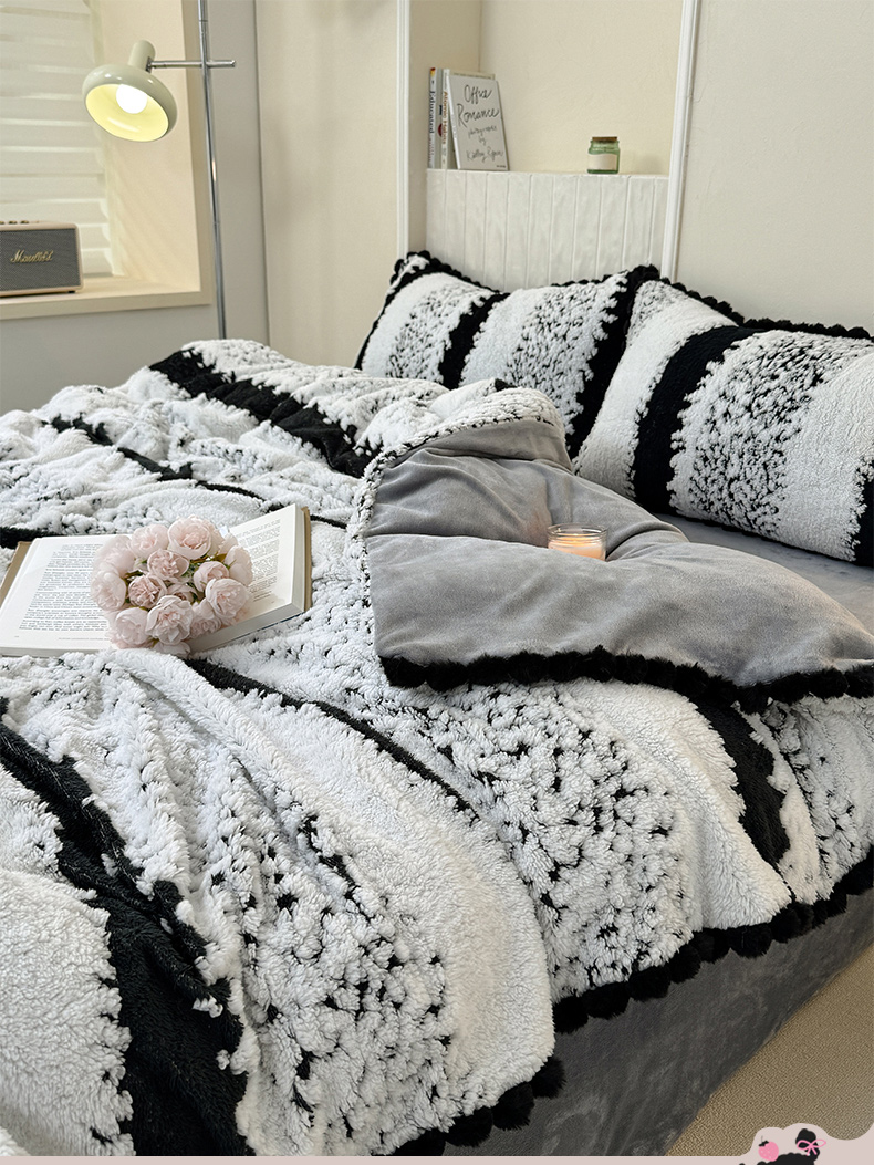 当前位置: 91家纺网 > 商品网购 > 床品套件 > 四件套 > 其它四件套 > 潮邦创意家居 2025新款冬季阳离子提花云纹绒工艺四件套-绒眠小筑系列 绒眠小筑-耀黑