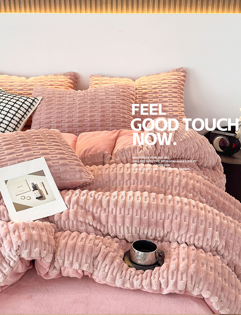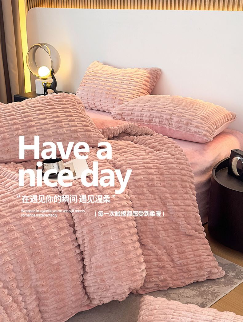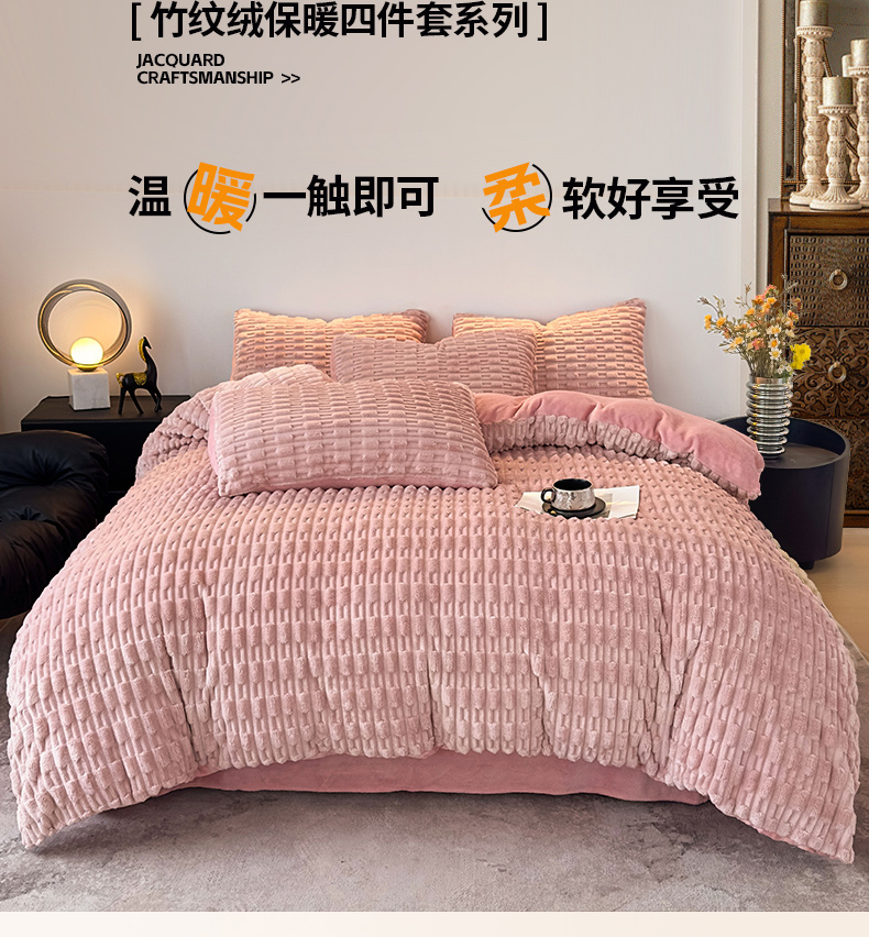 当前位置: 91家纺网 > 商品网购 > 床品套件 > 四件套 > 牛奶绒四件套 > 潮邦创意家居 2025冬季竹纹绒牛奶绒四件套-暖绒竹韵系列 暖绒竹韵-清新粉