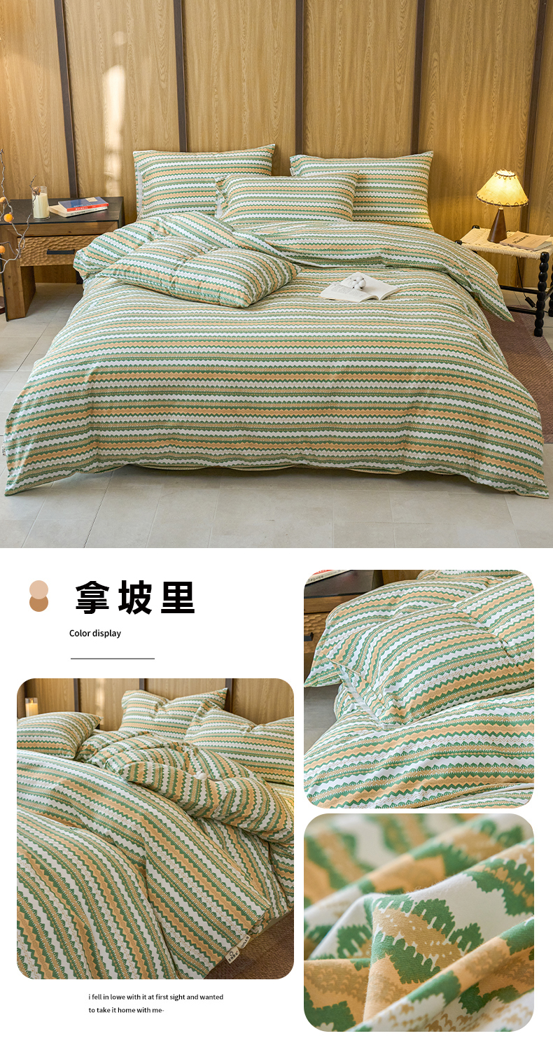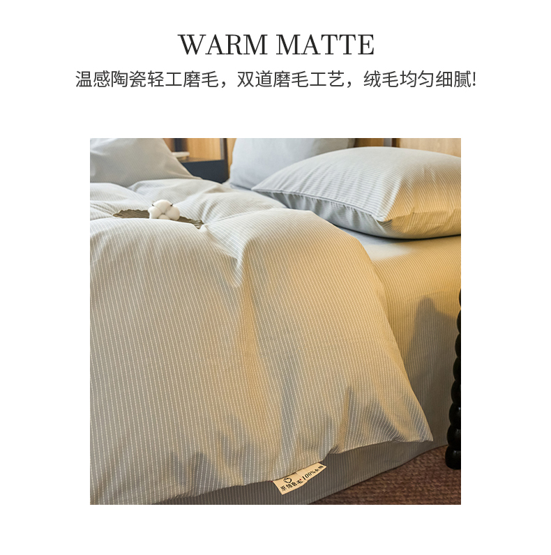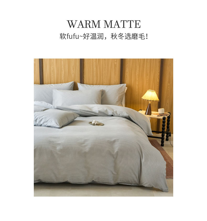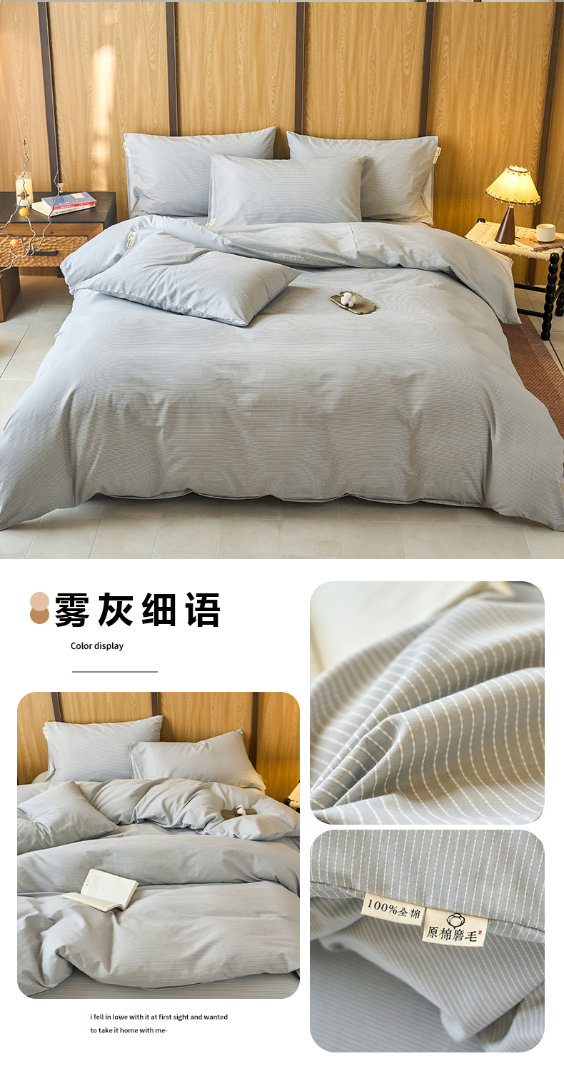 春皖家纺 2025新款全棉原棉磨毛色织水洗四件套回暖系列-风格二 雾灰细语